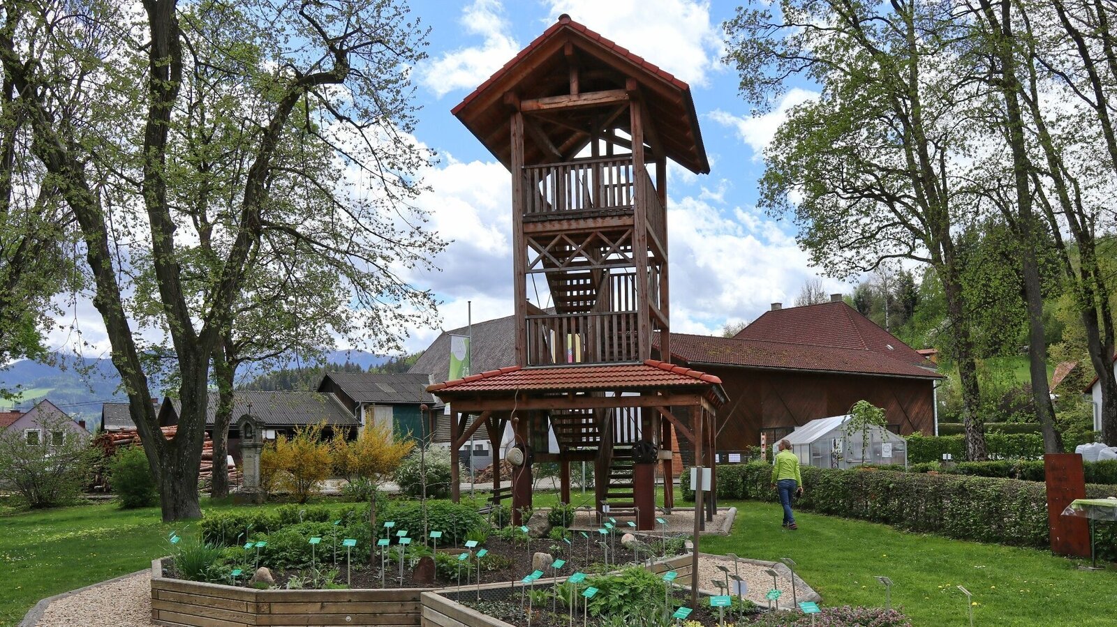 At the car park (1), 641 m, of the Raiffeisenbank in Großlobming, we orientate ourselves by the yellow signpost with the inscription "Waldrundweg über Reitinger". Walk through the village past the Wulz inn, change sides of the road and walk along the pavement to the start of the Lobmingtaler Rad- und Erlebnisweg. Cross the bridge over the Lobmingbach stream and continue slightly to the right along the road, passing the herbal competence centre. At the next junction, turn left, briefly along the park road, until we hike slightly uphill to the right at the next junction. Now follow the asphalt road for a few metres until a gravel road branches off to the left, which we follow to the Hubertus wayside shrine (2), 722m. The trail continues along forest roads and forest tracks and brings us directly to a large clearing, the Reitinger waypoint (3), 770 m. After a leisurely break, we follow the forest road downhill and leave the main trail in the first right-hand bend. Continue leisurely through the forest and subsequently downhill along the edge of the forest until you reach the Lobmingtaler Rad- und Erlebnisweg. Now turn left and walk along the newly constructed asphalt path and the path we already know through the village back to our starting point.