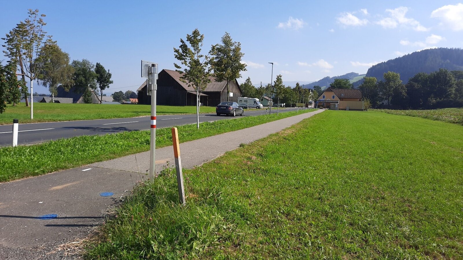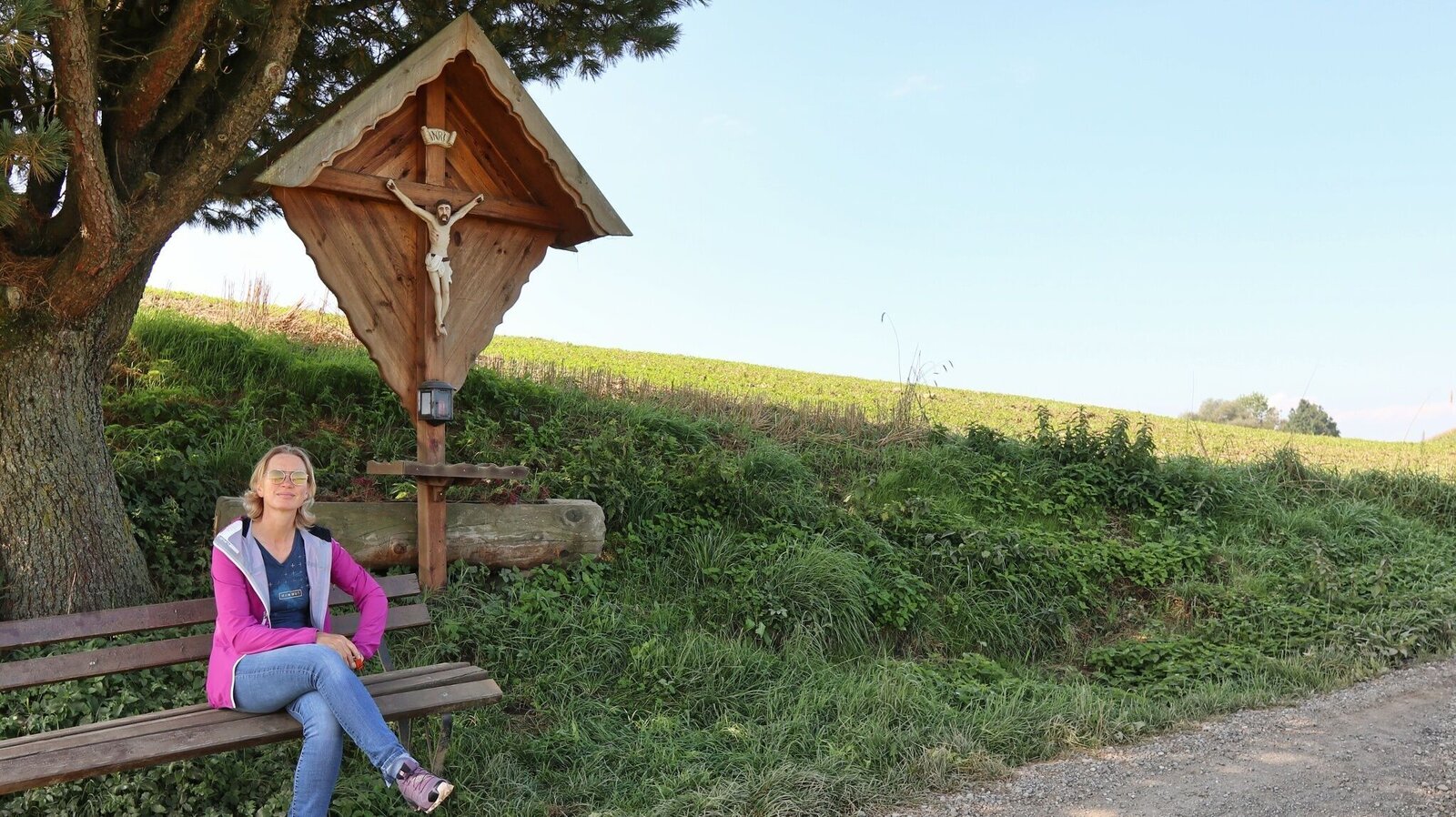 At the car park of the Raiffeisenbank in Großlobming (1), 641 m, we orientate ourselves by the yellow signpost with the inscription "Feldrundweg Großlobming". We start in the direction of Knittelfeld and cross the road after a few metres. Continue over the Lobmingbach stream and past the church, the trail continues to the left. Now we follow an asphalt road for the time being, which leads into a gravel road at the end of the populated area. From now on, we always stay straight ahead. The path passes a field cross (2), 654 m, with a bench and at the large stable building we hike to the left. After a short while we reach the busy main road, turn left at the cycle path and immediately right again. From now on we are on meadow paths and forest edge paths and thus avoid the road in a large loop. Once back on the asphalt road, we go right and then straight ahead to the bridge over the Lobmingbach stream and then left. After a few metres we reach our starting point.
