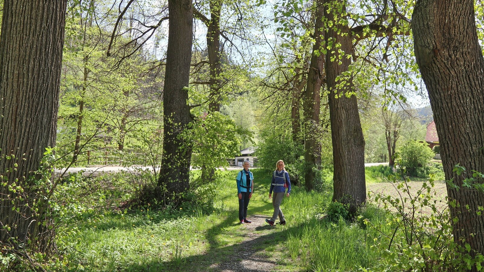 At the parking lot (1), 641 m, of the Raiffeisenbank in Großlobming, we follow the yellow signpost with the inscription "Jägerkreuz am Lobmingtaler-Rosenkogel". We walk through the village past Gasthof Wulz and continue in the direction of Kleinlobming. After a few meters, we turn left into the Sulzbachgraben and follow the avenue to the bridge, where a paved dead-end road runs parallel to the road on the right. Just behind the house we see a yellow signpost indicating the direction. From now on, we follow the well-marked hiking trail, which leads steadily uphill on hollow paths and forest roads until we turn right at a forest road junction. From now on we hike slightly uphill or almost flat. At the high-voltage power line, we have a beautiful view of the Judenburg-Knittelfeld basin with the Seetal Alps and Wölzer Tauern behind it. Turn left at a crossroads and continue along the forest road until you reach the Lobmingtaler-Rosenkogel (2), 1008 m, just before your destination. A newly erected hunter's cross with a wooden bench and the magnificent view towards the Seckau Alps invite you to linger. The way back is via the ascent route.