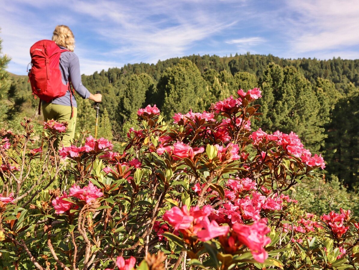 The Seetaler Alps in the Murtal adventure region live up to their name on the eastern side: nine cirques and seven cirque lakes (Wildsee, Großer and Kleiner Winterleitensee, Frauenlacke, Lavantsee, Ochsenlacke, Lindersee) lie embedded in this glacially shaped mountain landscape of Upper Styria. The highest peak of the Seetal Alps is the Zirbitzkogel (2396 m), which attracts numerous hikers in summer and winter. With this tip we present you the "little brother" of the Zirbitzkogel, which is an attractive peak with a sea level of 2306 meters and scores with three cirque lakes during the ascent and descent. For some time now, the alpine bush has also been blooming, transforming the slopes into fields of pink flowers and making the heart of every hiker beat faster.