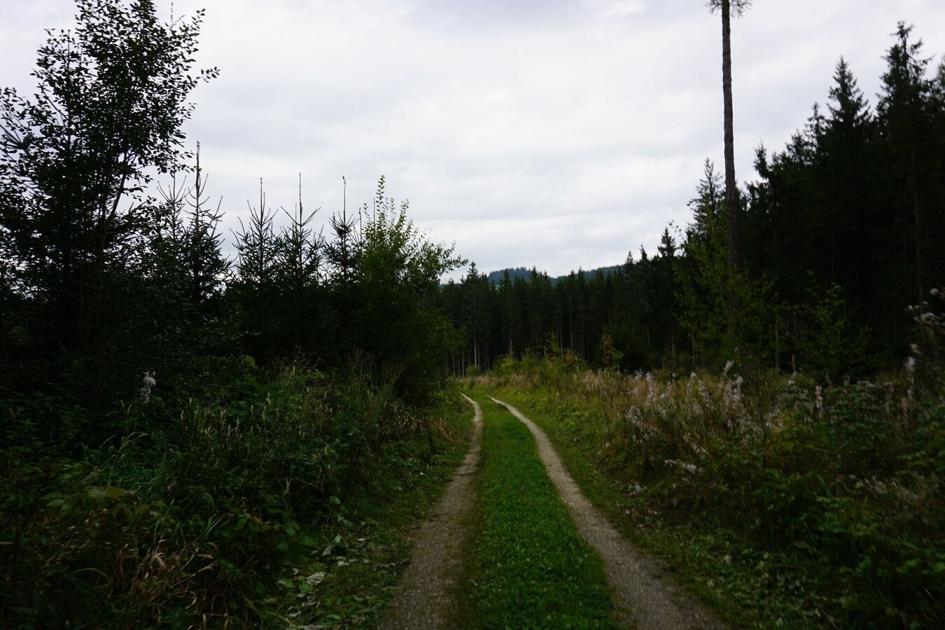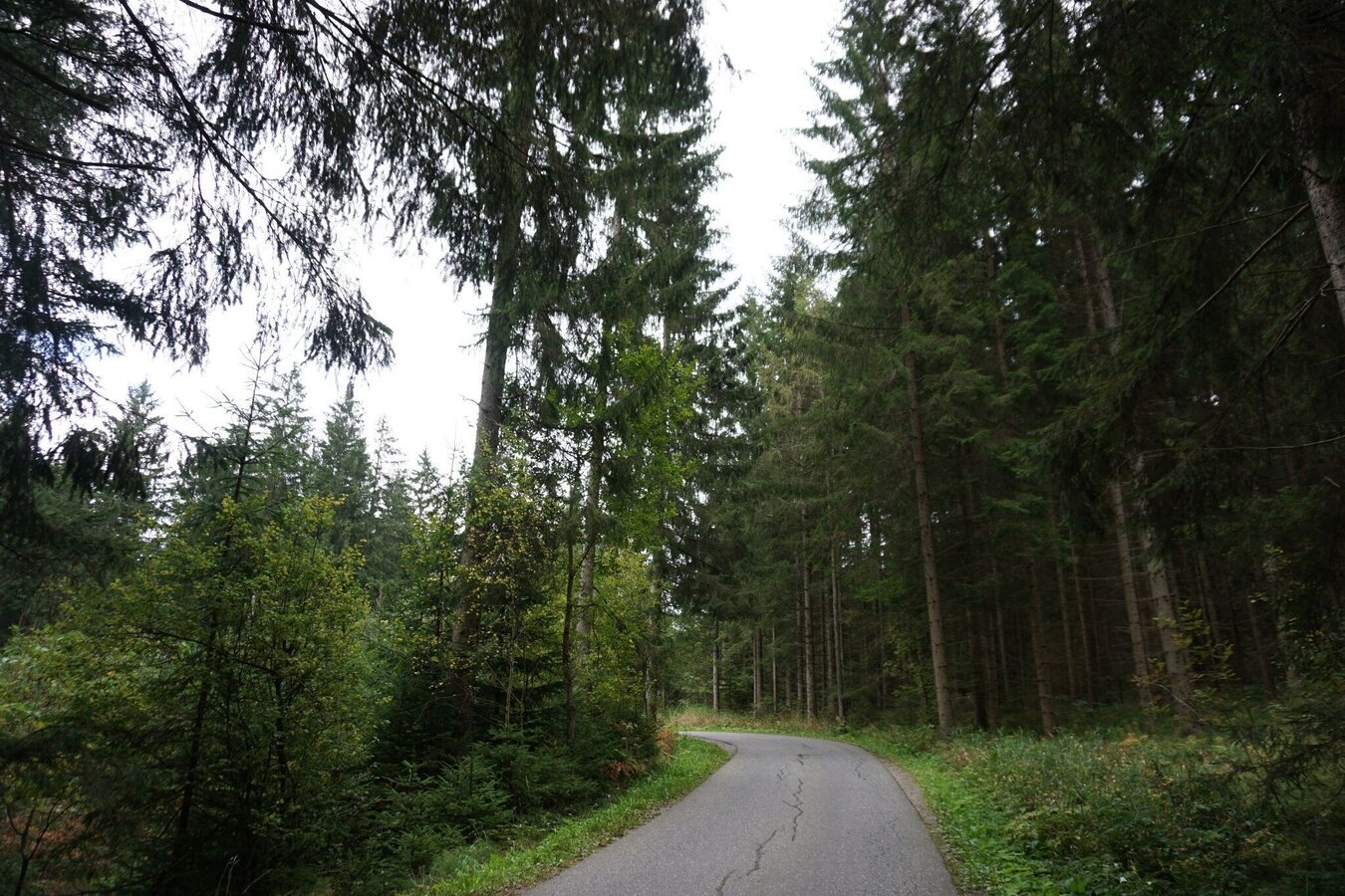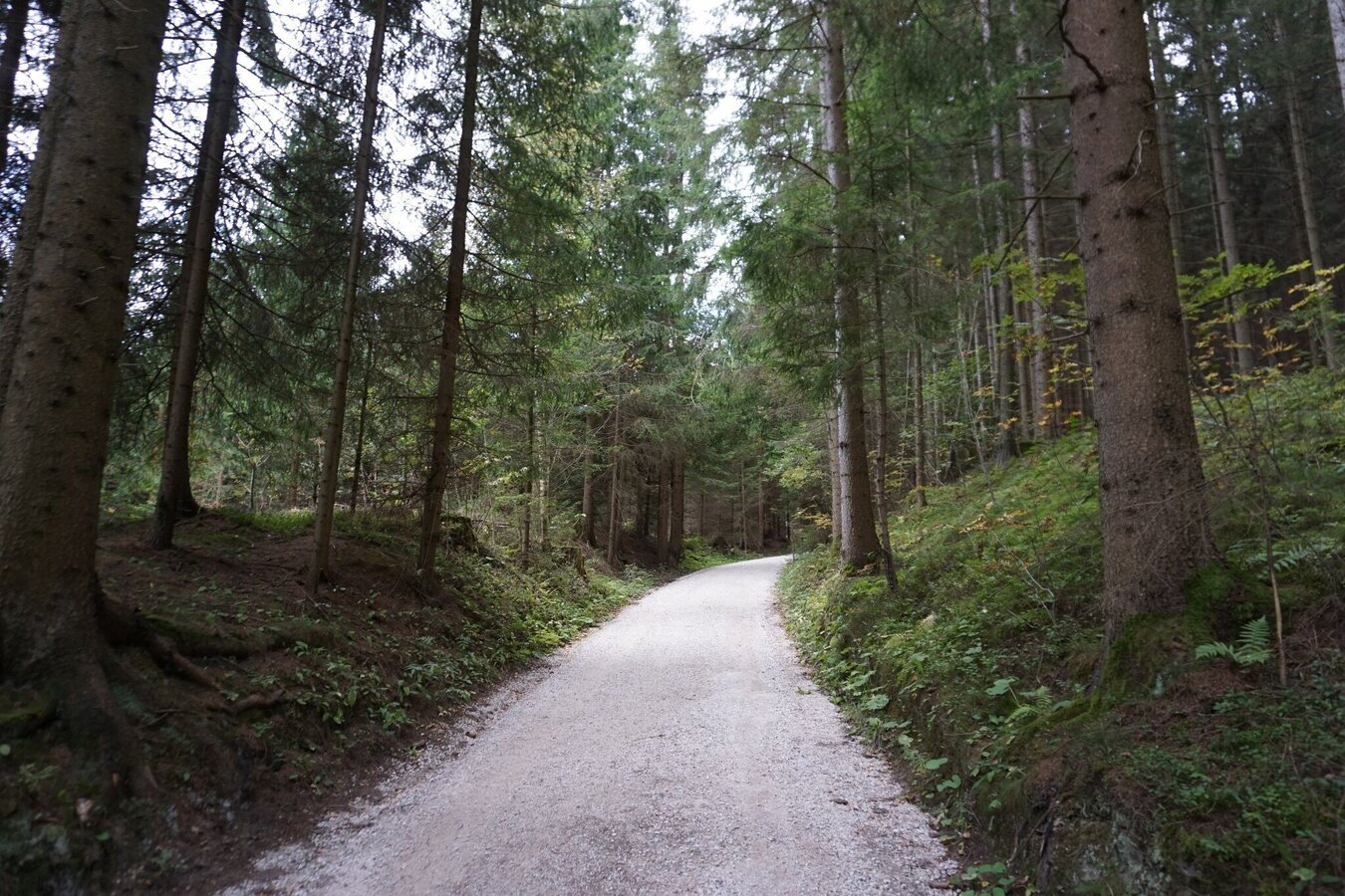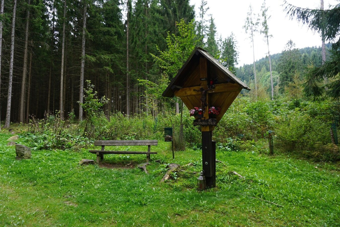 From here, a wide gravel path leads us through a beautifully maintained mixed forest. We pass the Scherngell cross. The gravel path soon changes to asphalt.