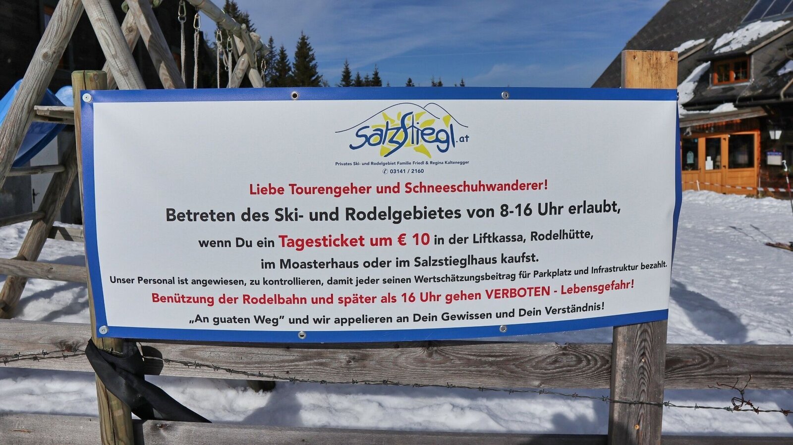 Ski tourers or snowshoe hikers who want to go up the Speikkogel have to pay 10 € per person to cross or go up the slope.