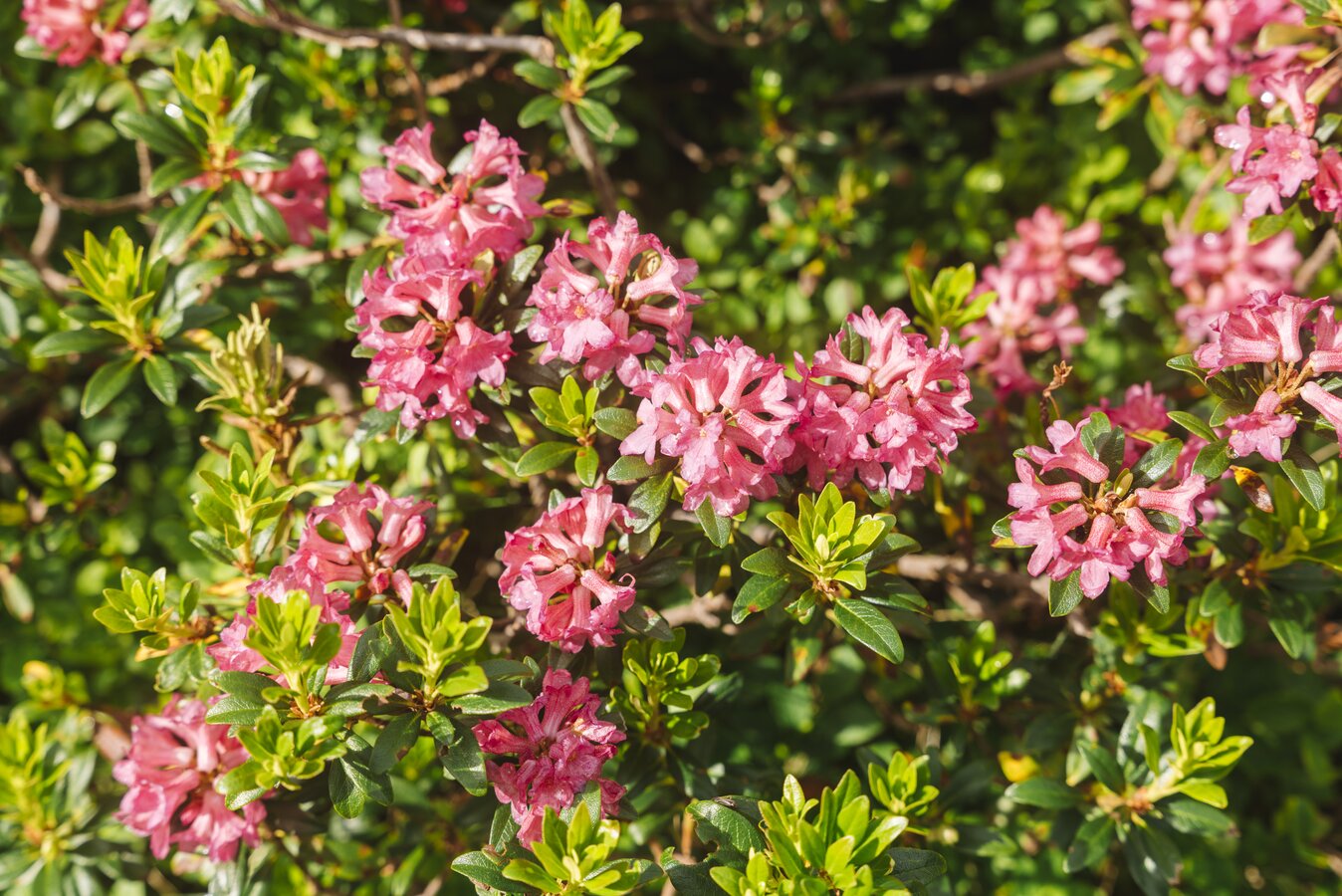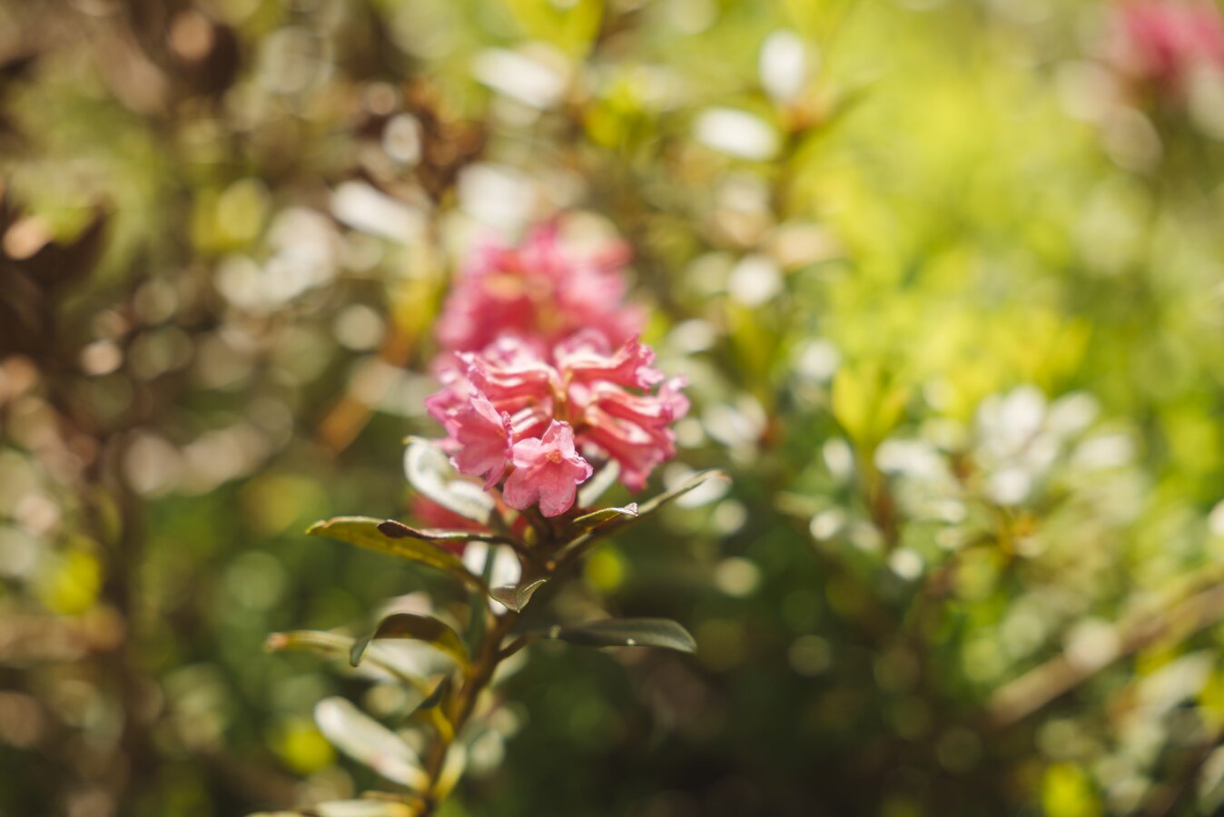 In Latin, the Almrausch is called Rhododendron hirsutum and grows to around 1 metre tall. The evergreen plant blooms at the end of June / beginning of July in bright shades of pink to pink and lends its surroundings a very special charm. Did you know that it is also called lime indicator? This is because it only grows on very calcareous ground and is therefore favoured in the Alps.