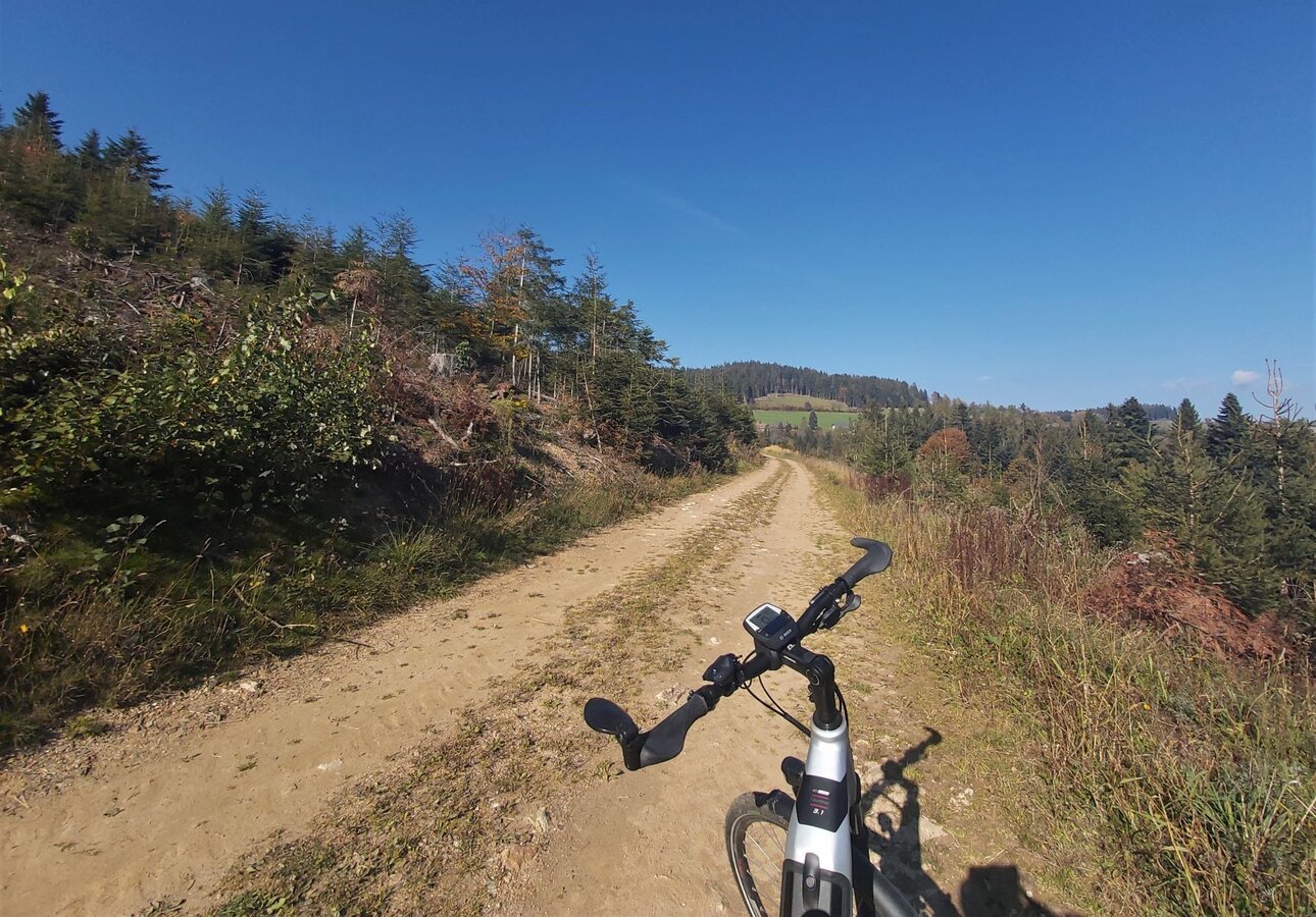 - From the URKRAFT Arena, or the parking lot at the open-air museum, head out in the direction of "Stift".At the crossroads, we turn right up to the monastery, take a sharp left and head out to the left, following the "Großer Jogl" signs towards MönichwaldWe turn right and descend steeply into the center of Vorau.We cross the road in front of the "Vorauerhof" and continue straight ahead. We leave the village along the stream.The route now climbs steeply towards "Dörfl" and soon we have a beautiful view down to the monastery.Watch out, we now turn right into the forest ("Der große Jogl") and continue along a farm track. Don't worry, the path is easier to follow than the first section suggests. After a few kilometers, we can already see the church tower of the Reinbergkirche ahead of us.We turn right and ride the short stretch to the church, which is usually closed.Back to Vorau, we take the same route to Moihof and keep left at the recycling center and continue over the bridge towards Vorau.In Vorau, we keep to the right at the armory, pass the town hall and ride down to the "Vorauerhof".Before the "Vorauerhof", we turn left in the direction of the "Kutscherwirt", the last section is a steep climb up to the monastery.
