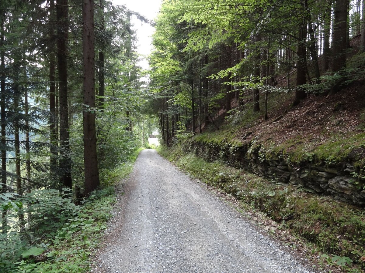 - We follow the gently sloping gravel road past farms through forests to the inn