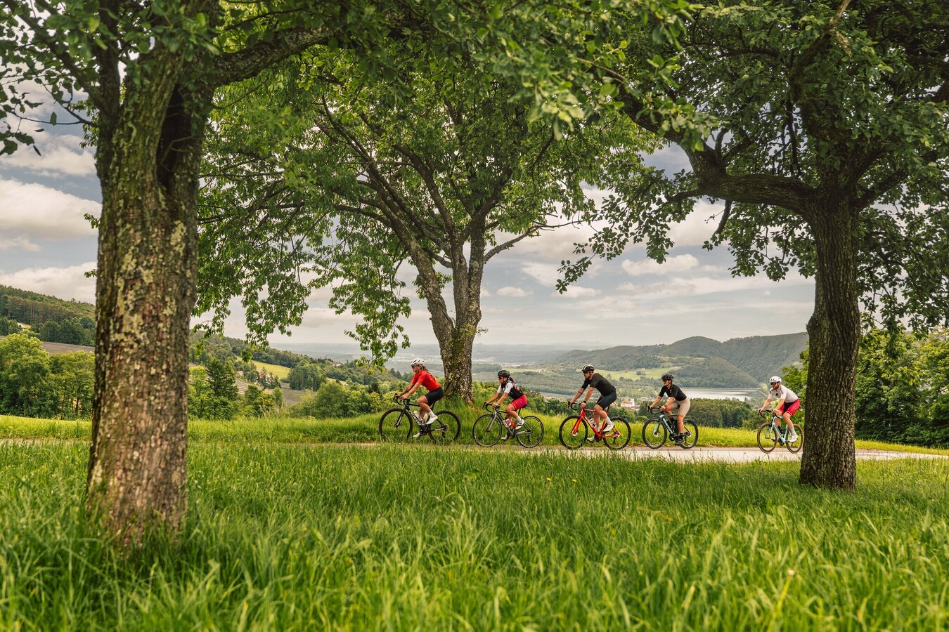 Through Lebing, along the Haringweg, past Neuhaus Castle, here you have a fantastic view of the Stubenbergsee lake