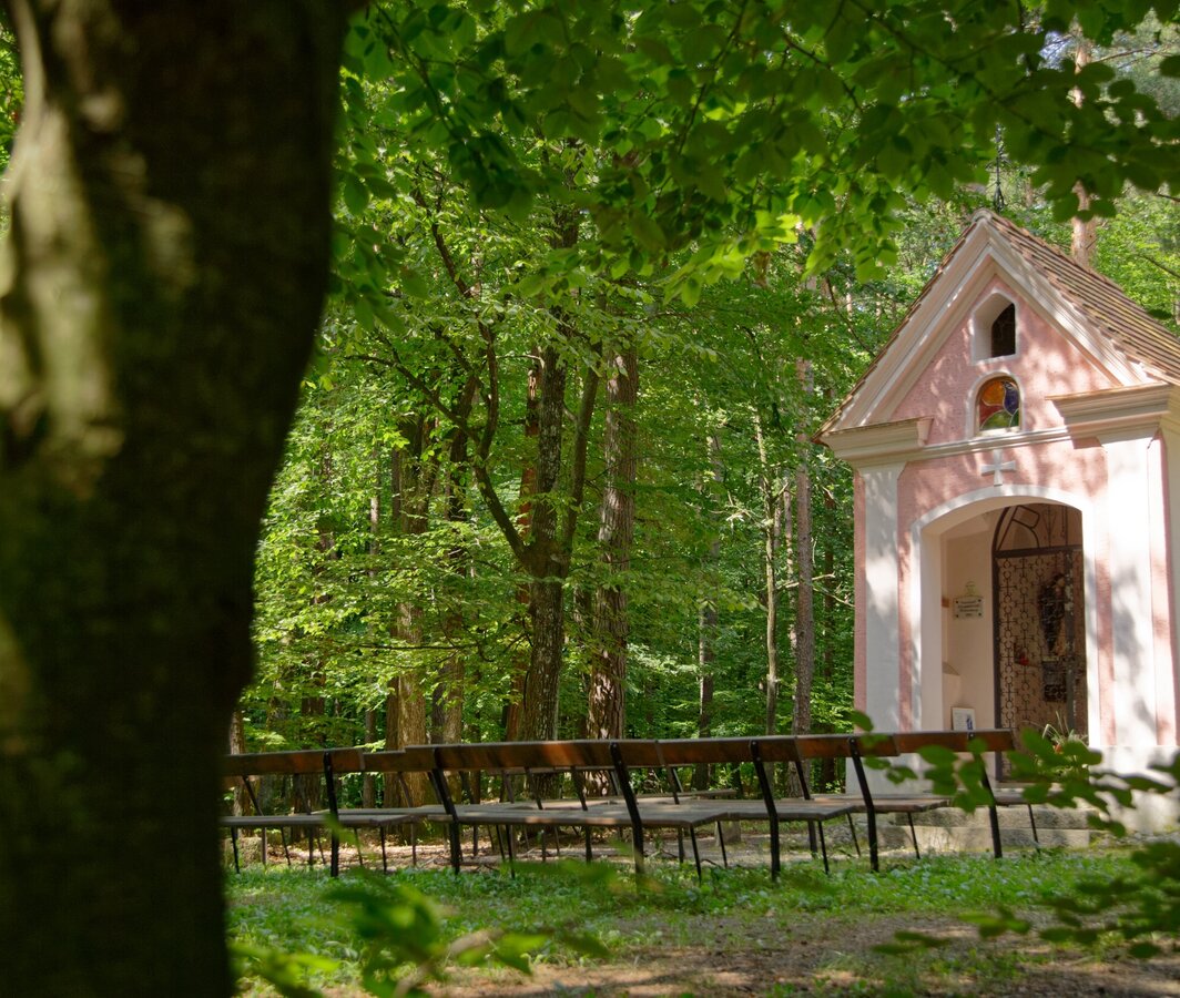 If you continue along the wine road, you will find the Loretto Chapel with its black Madonna hidden in the forest near Altenberg. The road follows the ridge as far as Buch-St. Magdalena am Lemberg, from where the view stretches over Burgenland far into Hungary
