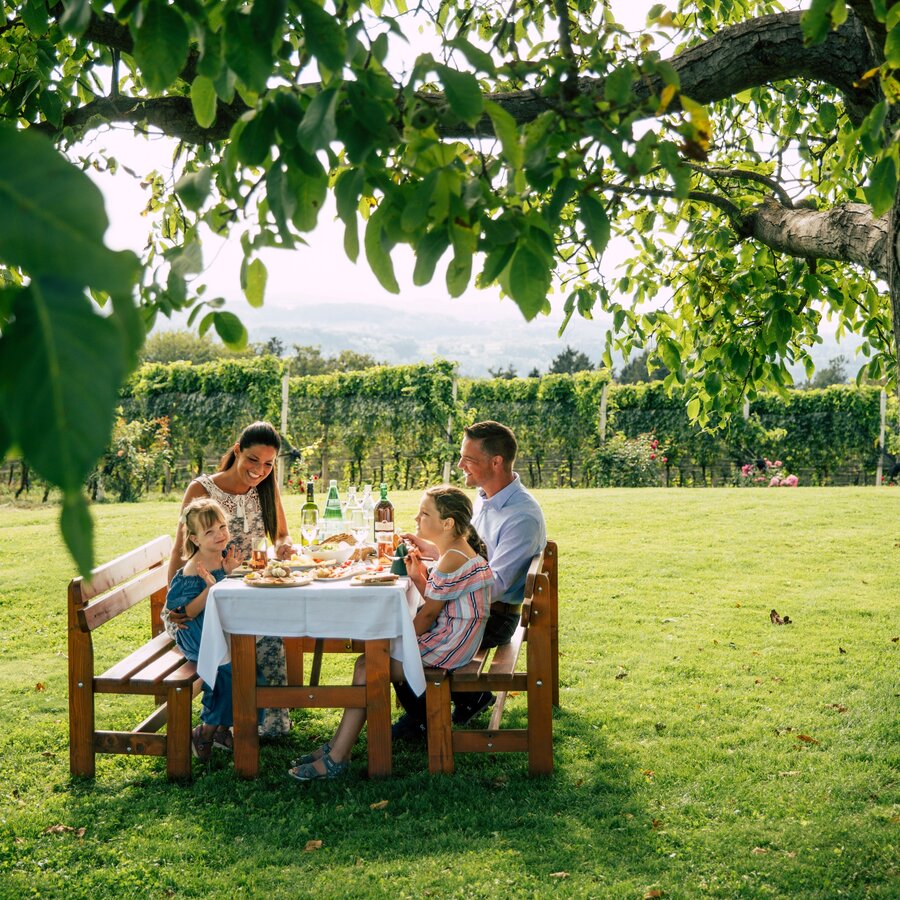 The Roman traces of viticulture are concentrated in St. Johann bei Herberstein, where the second largest collection of gravestones from the Roman period in Eastern Styria can be found. You can also admire the magnificent Herberstein Garden Palace from the 13th century, which is surrounded by the Herberstein Zoo. Stubenberg am See, the next town on the wine route, is dominated by Lake Stubenberg and Stubenberg Castle. The latter - like the nearby Schielleiten Castle - has been converted into a hotel and cultural centre. To discover all these sights, a circular hiking trail is a good idea. A visit to the schnapps nature trail provides a different kind of enjoyment, and from the tree to the bottle design, you can get to know everything that makes a good "home-brewed" schnapps.
