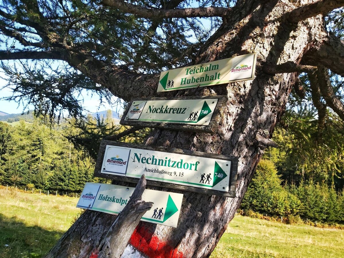 Signpost on Gschaid Alp, Nature Park Almenland in Eastern Styria | © Oststeiermark Tourismus | Christine Pollhammer
