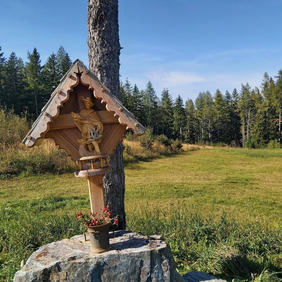 Via the wood sculpture trail up to the Gschaid-Nock and on to the Gerler cross: a varied hiking trail with a summit climb and refreshment stops.