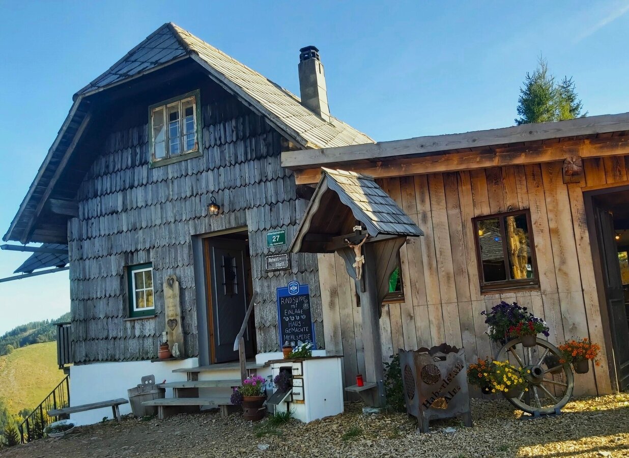 If you want to take a break during the hike, you can't miss a hearty snack and a cool drink at the Haberstall Hut.