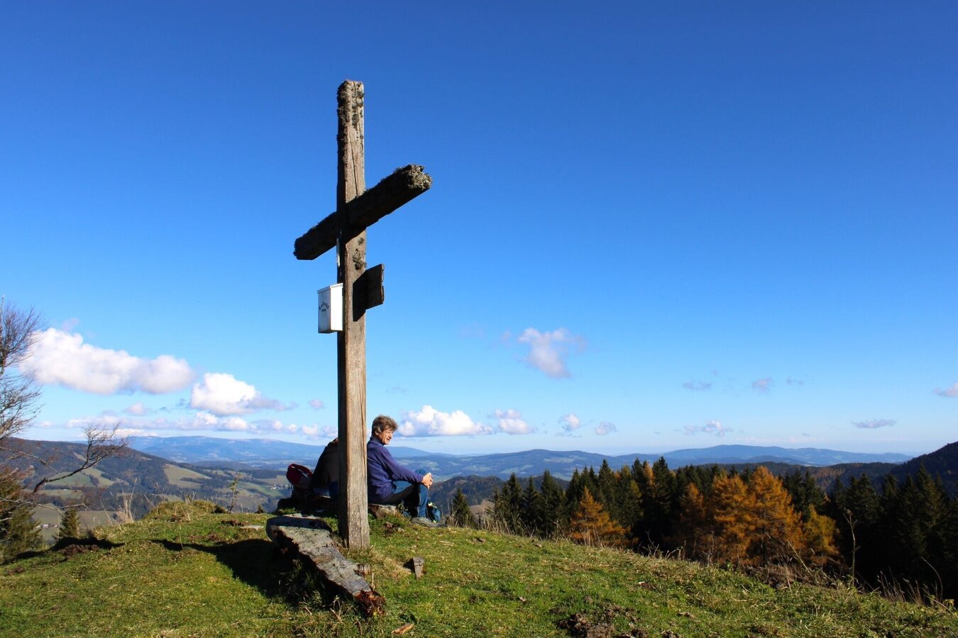 - If you would like to celebrate a summit victory, you can go to the right of the hut up to Zechnerschlag/Rohregg. The path is not difficult to find, although there are no markings, but there is a summit cross at the top.