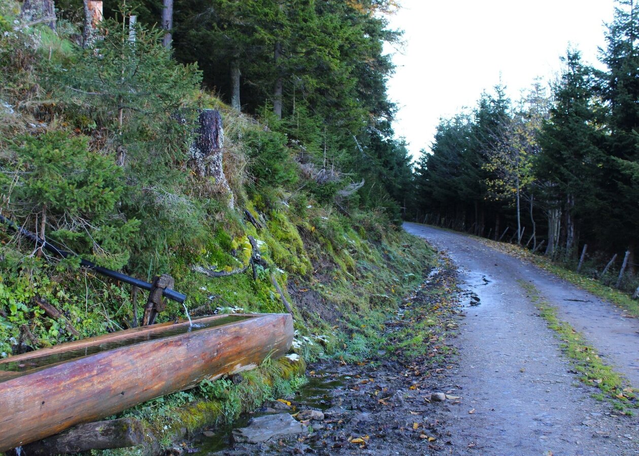 - After a rest at the hut, we take the easier route back to the “Stroßeggwirt” and go down to the access road.