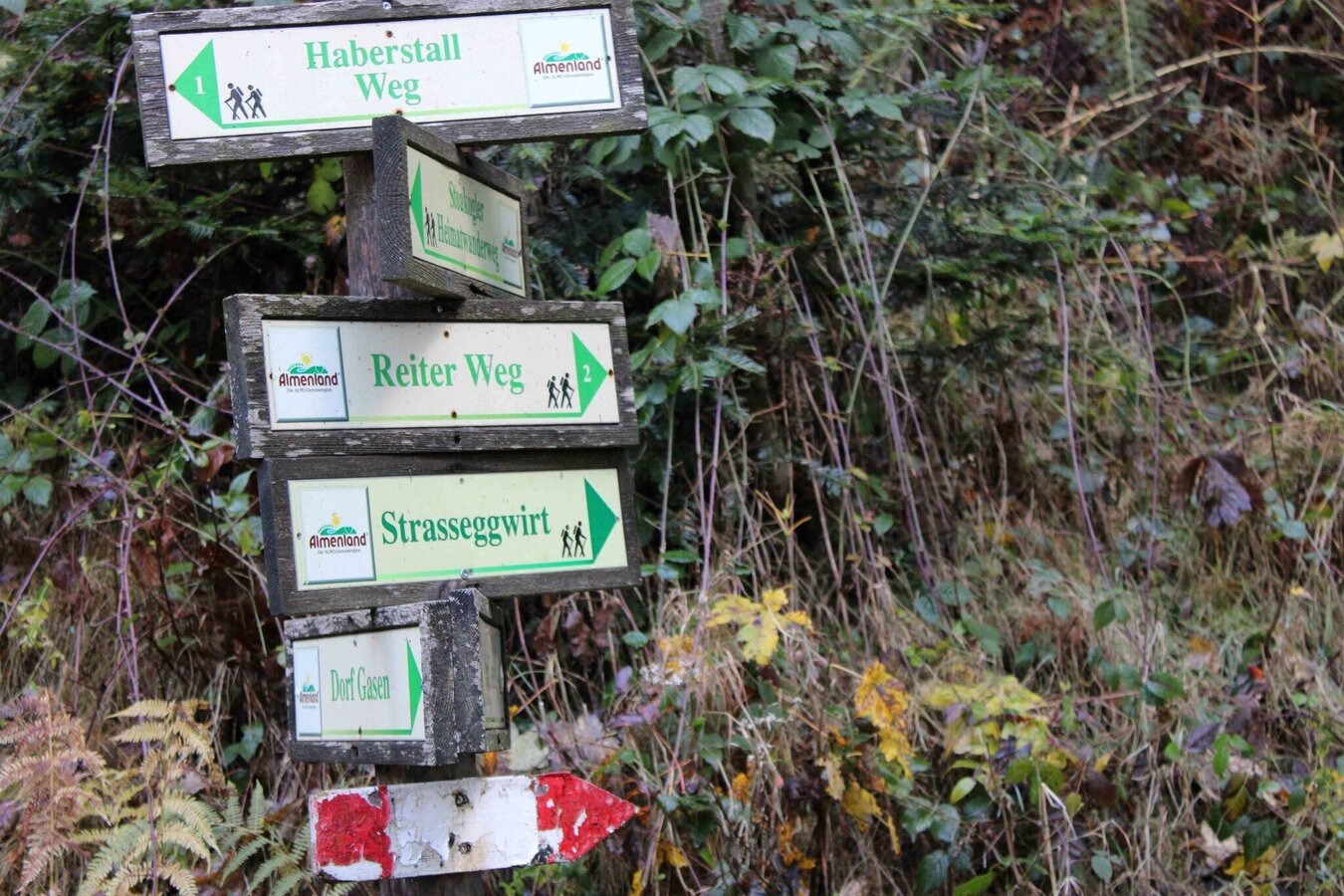 The path to Haberlstall is marked with “path no. 730/Sommeralm”, on the way back we use the markings “Dorf Gasen/Stroßeggwirt” or “Path no. 2/equestrian path”.