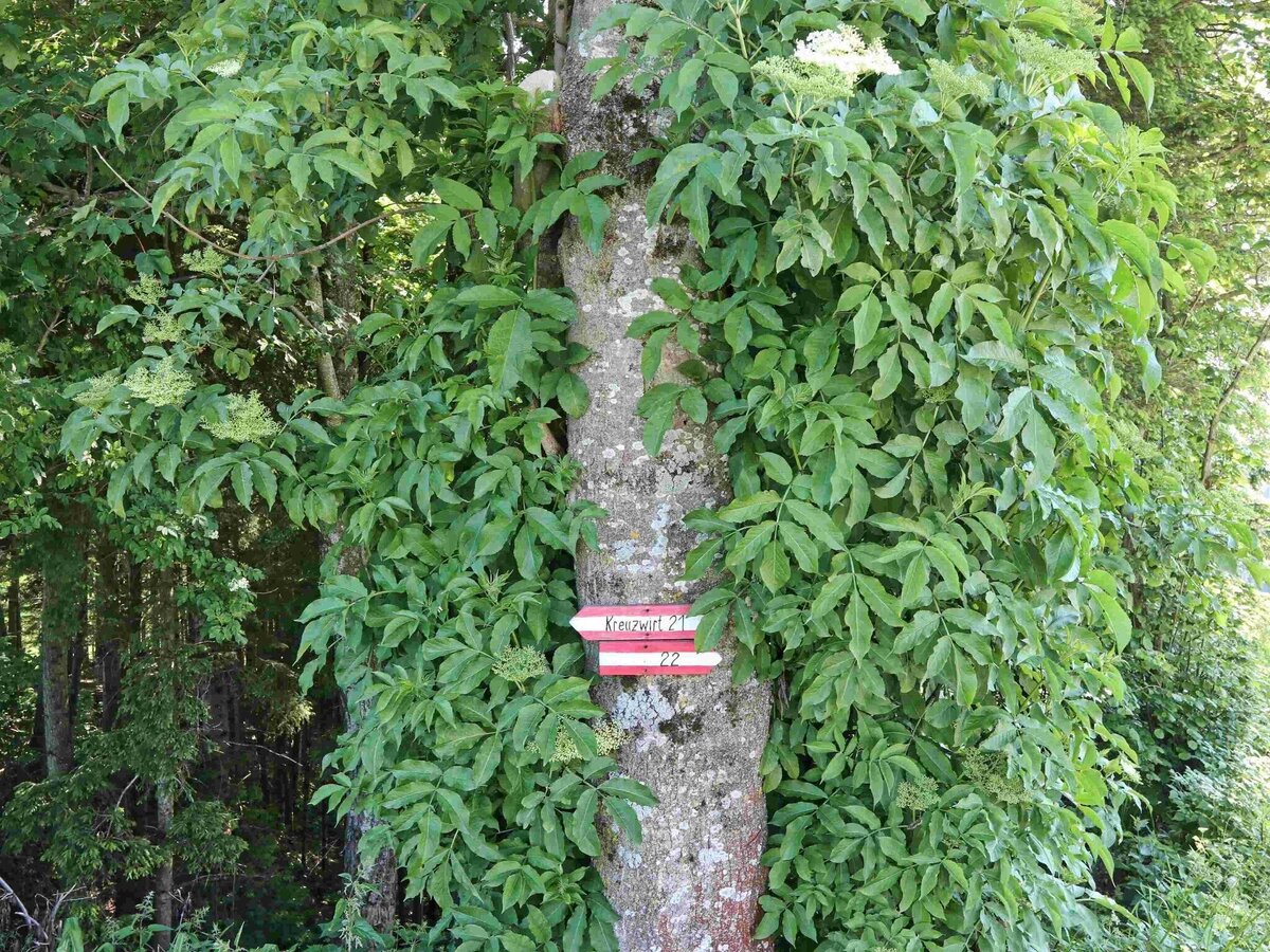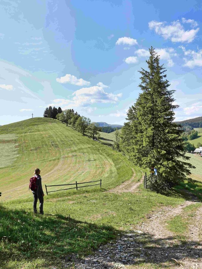 - Attention, here at the junction "Kreuzwirt" we turn right and walk past the large lime trees with the wayside cross.