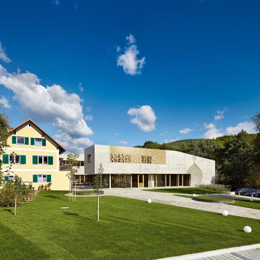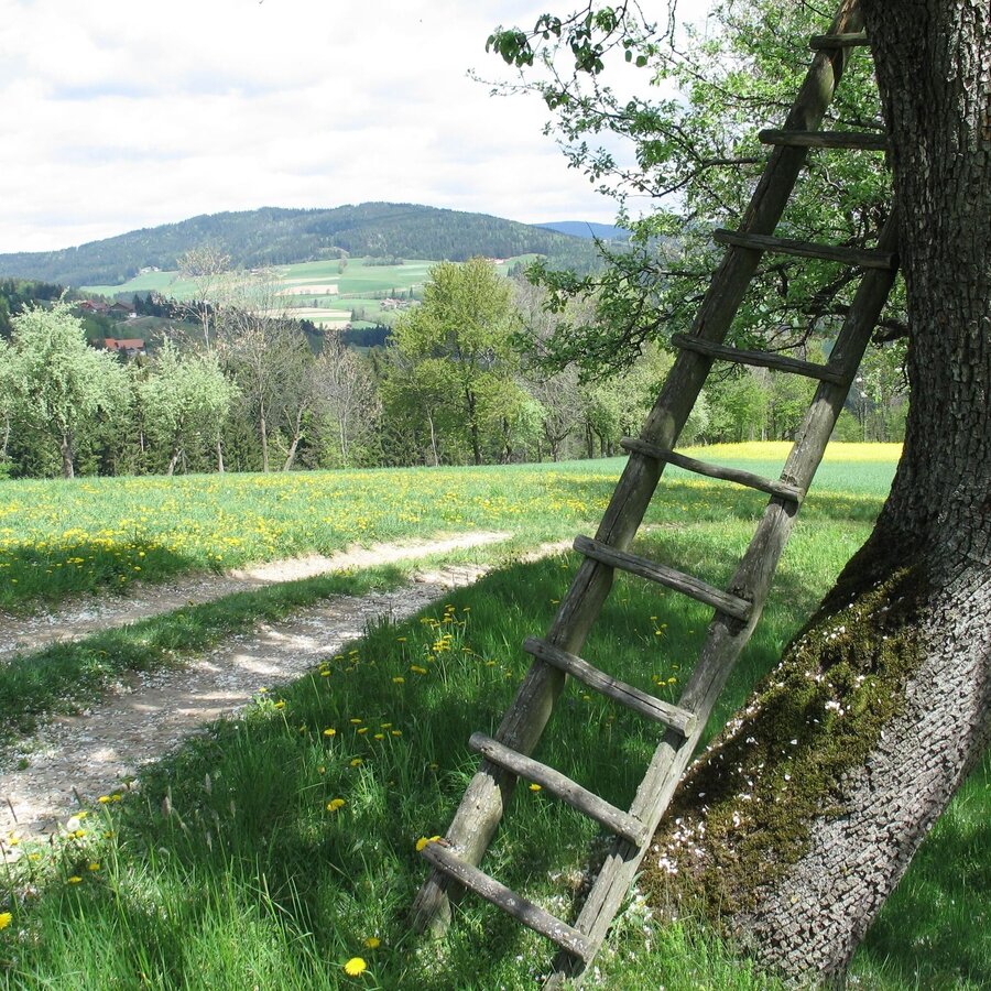 - The signpost "Richtung Gschaid" leads us north along Ortenhofenstraße to a wayside shrine and the blue house of the Almbauermühle, where we follow the yellow/blue markings and the "Naturpark-Erlebnisrundweg" to the Hotel Restaurant Gruber.