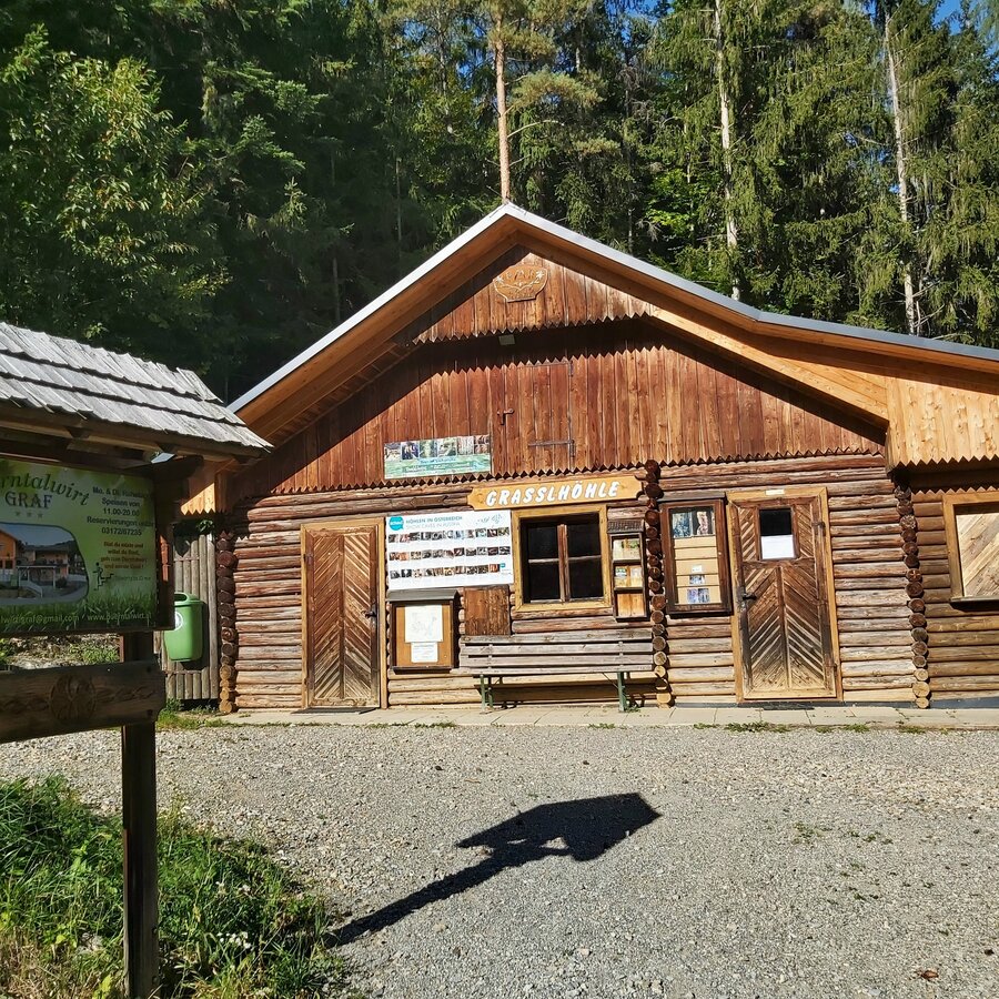 - At the information board before the ascent to the Gössersattel (the board draws attention to the former inn), we descend to the left along the "Naaser Höhlenweg" (Naas Cave Trail) in the direction of the Grasslhöhle cave and Dürntal valley.