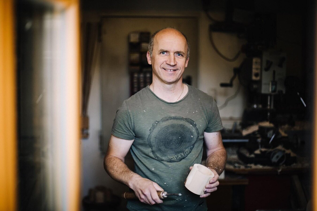 - After a good 2/3 of the way, at the "Gromban Häuserl", we can now make a detour to the right to the "professional wood turner" Peter Pöllabauer. A look into his workshop is worthwhile not only because of the great smell of freshly processed wood.