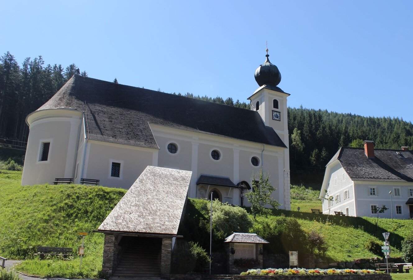 The path leads past the "Troadkostn", where the life-size, carved nativity figures can be admired during Advent and past the parish church, which has two patrons: St. Oswald is a much-revered patron of livestock and indicates the agricultural use of the area, while St. Barbara, as the protector of the miners, refers to mining in earlier days. Iron ore, gold, silver and arsenic were mined around Gasen until the 19th century.