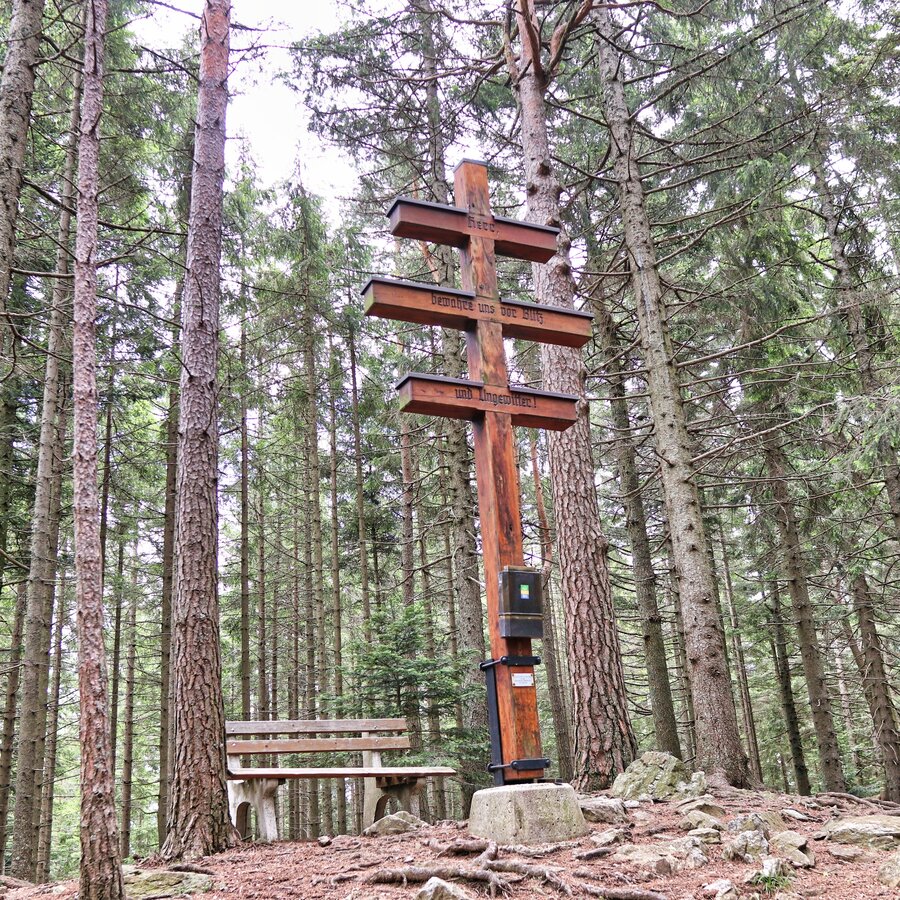 - Initially along the edge of the forest and further through the forest, we always walk along the wide main path to the weather cross on the Floisenkogel, 1,217 m