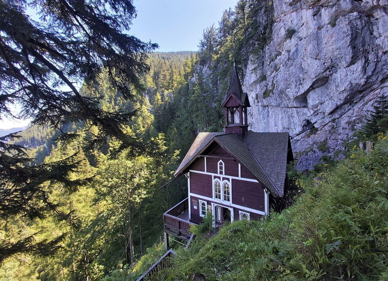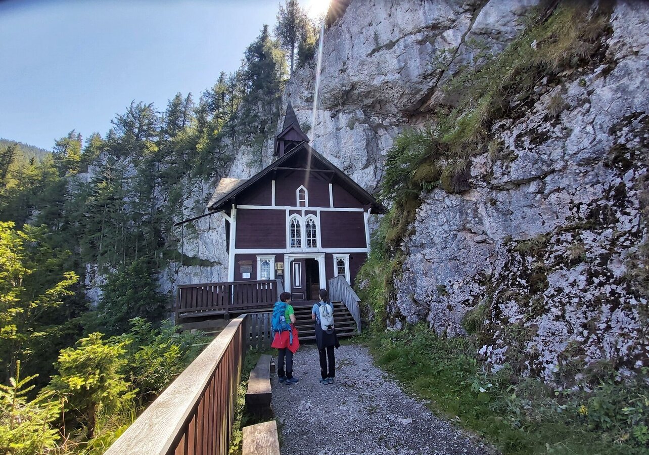 The small wooden chapel Schusserlbrunn is virtually attached to the Lantschmauer and can only be reached on foot. The name is derived from the rock bowls in the grotto behind the church; the small spring there is said to be healing and especially helpful for eye problems. Many myths and legends surround the pilgrimage site, which was already a place of worship in the mid-18th century. In 1974, the small church had to be moved ten meters to a new foundation due to the threat of rock falls. The church is also known from the television program “9 Places, 9 Treasures”. In 1918 it was voted the most popular excursion destination in Styria and came third in the federal decision.