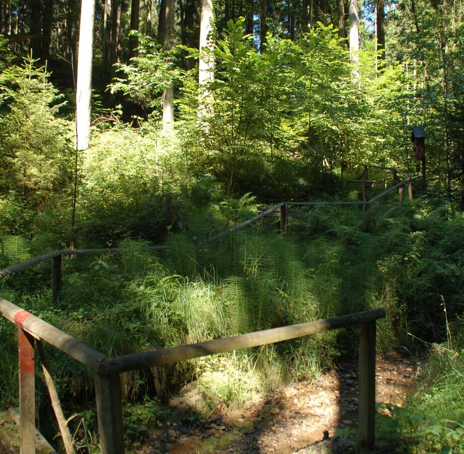 - Here the circular hiking trail around the ponds makes a turn towards Wollsdorf. Before we reach the village, there is a long stretch of trail past meadows and pastures as well as through forests.