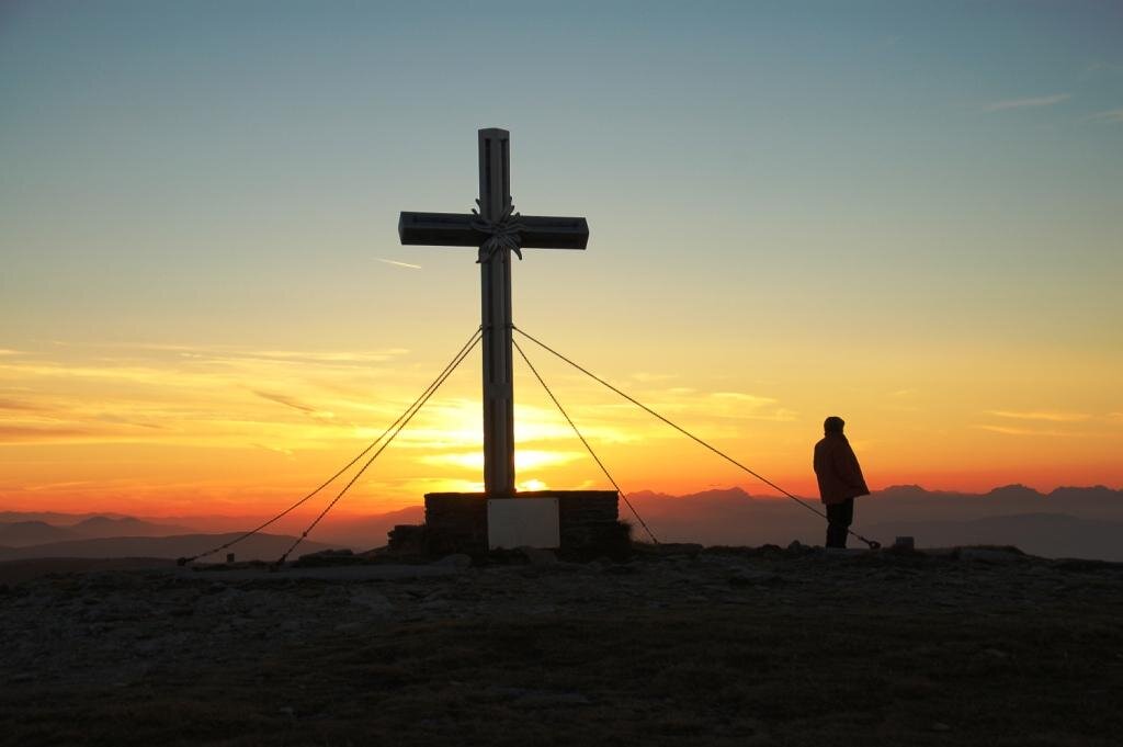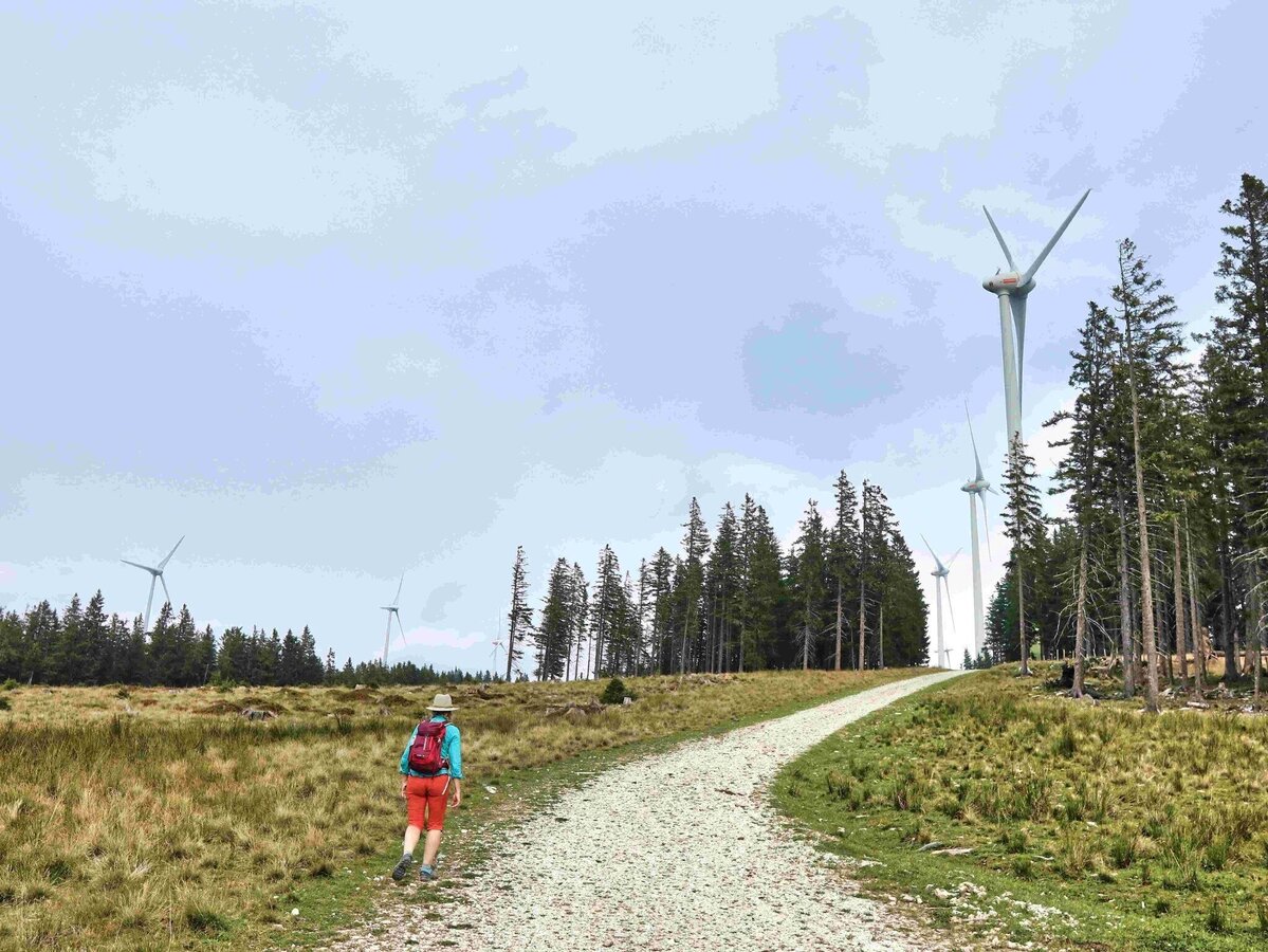 Day 3: From Schanzsattel, the trail leads unmistakably past the large Peace Cross along the left edge of a small ski slope, first through high forest and then across extensive alpine meadows, always slightly uphill in a north-easterly direction to the striking Teufelstein (1. 499m). 499m, a place of power, considered to be the oldest cult site in Styria), then almost directly south again and a short, somewhat steeper descent to the Halterhütte (open at weekends in summer) at the Alptor (1,386m, no overnight accommodation, but a recommended snack). From here, follow a forest path for a short stretch together with the tour around Joglland to the east, but soon the path turns north and descends to the Lendkreuz (1,044 m), where there are two options: either turn left uphill to Peter Rosegger's birthplace (1. 144m, recommended, but takes about an extra hour of walking) or a short stretch flat out of the valley following the asphalt road to the Grabler farmstead and then turning right via a path to Gasthof Schlagobersbauer (culinary tip: nomen est omen).  If you choose the variant via the birthplace, you can descend from there via the marked hiking trail to the forest school and from here a signposted path also leads to the Gasthof Schlagobersbauer.by means of a striking east - north - east loop, the country road, which leads over the Alpl, becomes visible and in a few minutes you reach the Roseggerhof (1,096m, highly recommended inn, overnight stay possible) walking along it. The trail climbs again - but never really extremely steep and always through cool forest to the Jägerhöhe (1,227m) and further on, now almost flat, to the Red Cross, a striking wayside cross, after which you soon reach the Hauereck (1,301m) with the Sonnenhütte (overnight stay possible), just a short distance away and then one of the most beautiful panoramic hiking trails in the Eastern Alps begins, which is even part of the EU alpannonia® project. From Hauereck uphill through typical alpine high forests and suddenly you reach the wind farm on the Rattener Alm (open in summer) and the Steinriegel (1,577m). In the shadow of the mighty wind turbines over alpine pastures and through a short section of forest to the Rosegger Schutzhaus (1,586m), which is already visible just below the Pretul summit. Overnight stay and obligation to eat blackberry strudel (as blueberries are called in Styria)! 3 hours Schanzsattel - Roseggerhof, 3 ½ hours Roseggerhof - Hauereck - Pretul/Rosegger Schutzhaus