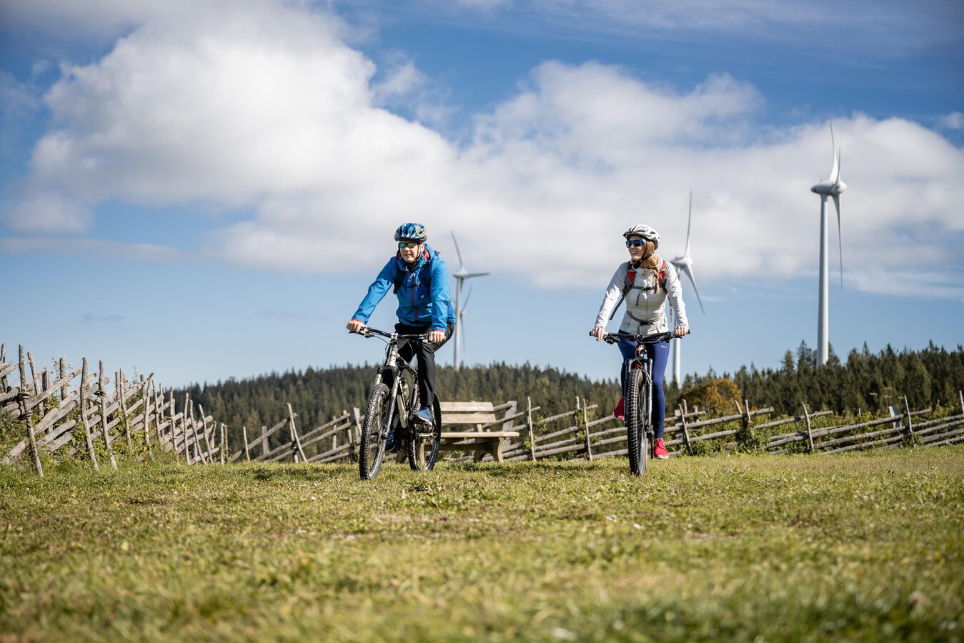 The stage of the touring mountain bike route “Der große Jogl” leads from St. Jakob im Walde via Rettenegg, St. Kathrein am Hauenstein, Falkenstein and Fischbach to Birkfeld.