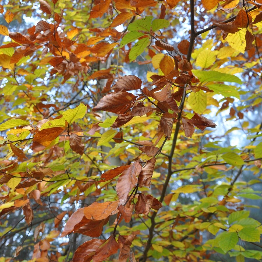 • We go slightly up into the forest on the right and follow the path. Soon we reach a clearing and follow the path. When we reach the next road junction, we keep to the right and walk along the road for a while.