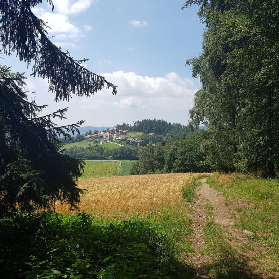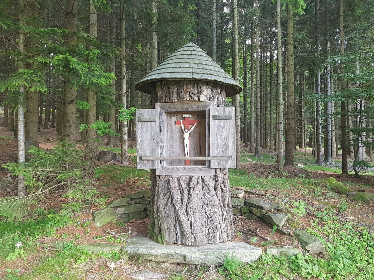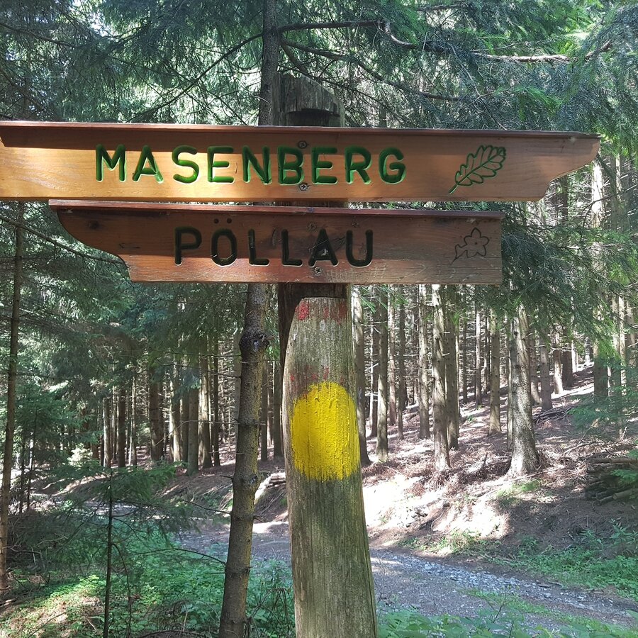 - Starting from the parking lot above the Naturparkarena, we walk to the crossroads with the chapel and the entrance to Pöllauberg.