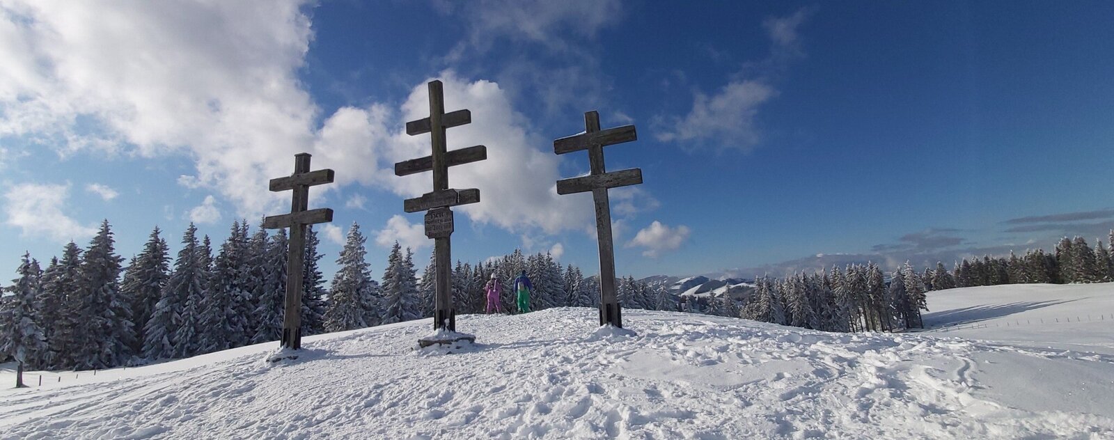 - After approx. 500 m we take the short climb to the right up to the "Drei Wetterkreuzen" (trail no. 45)