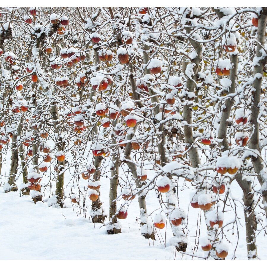 - Enjoy the sun glistening in the snow or frost on the fields and orchards. We walk on a cleared road here, but it can still be icy in places along the way.