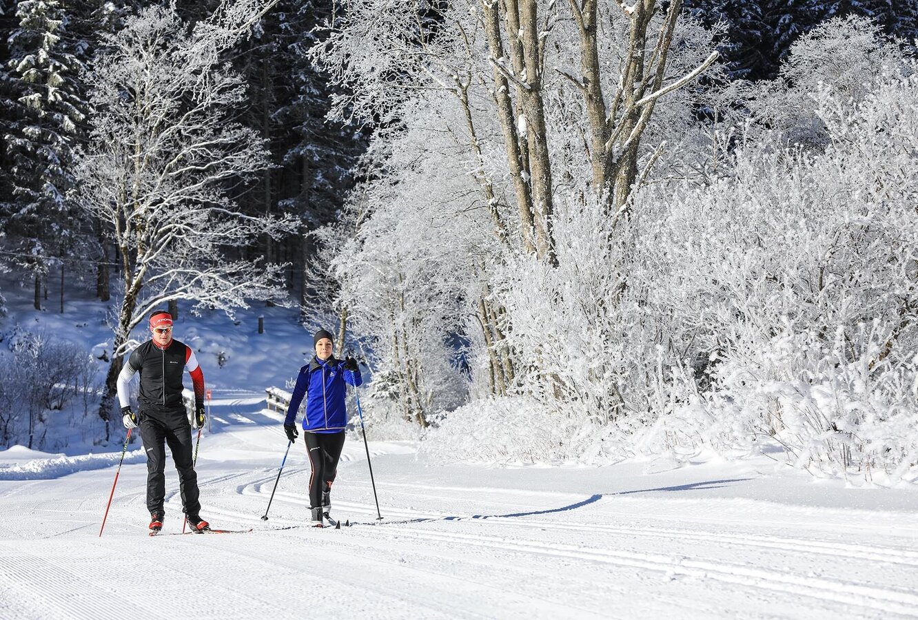 The route is especially charming due to the beauty of the scenery in the Untertal valley. While you are running along the track you pass by meandering Untertalbach creek and trees and bushes often covered with beautiful ice crystals. Almenrunde skating run is the perfect match for sportive nature lovers.
