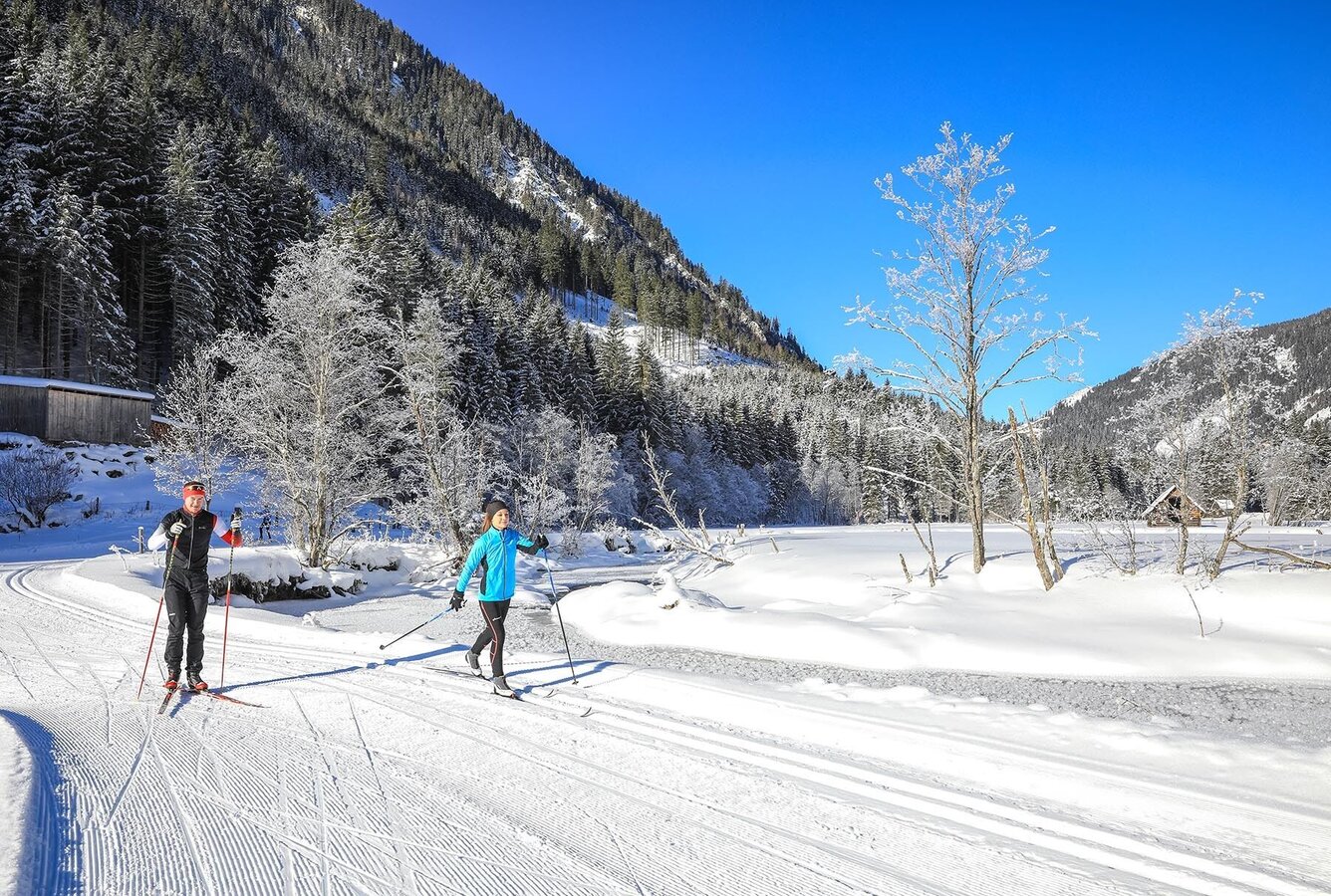 Heading out of the valley on 1.2 kms of classic XC track "Kristallloipe" takes you to Tettermoor skating run. On the way you pass by Waldhäuslalm.