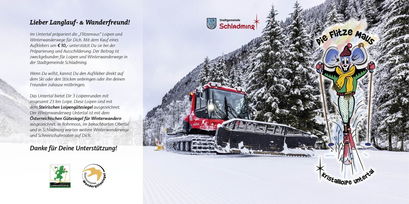 There are also small cash registers at the starting points where you can make a voluntary contribution. Since the trail preparation depends mainly on the quality of the snow, the conditions cannot always be the same. The Flitzemaus and the hard-working trail workers naturally try their best.