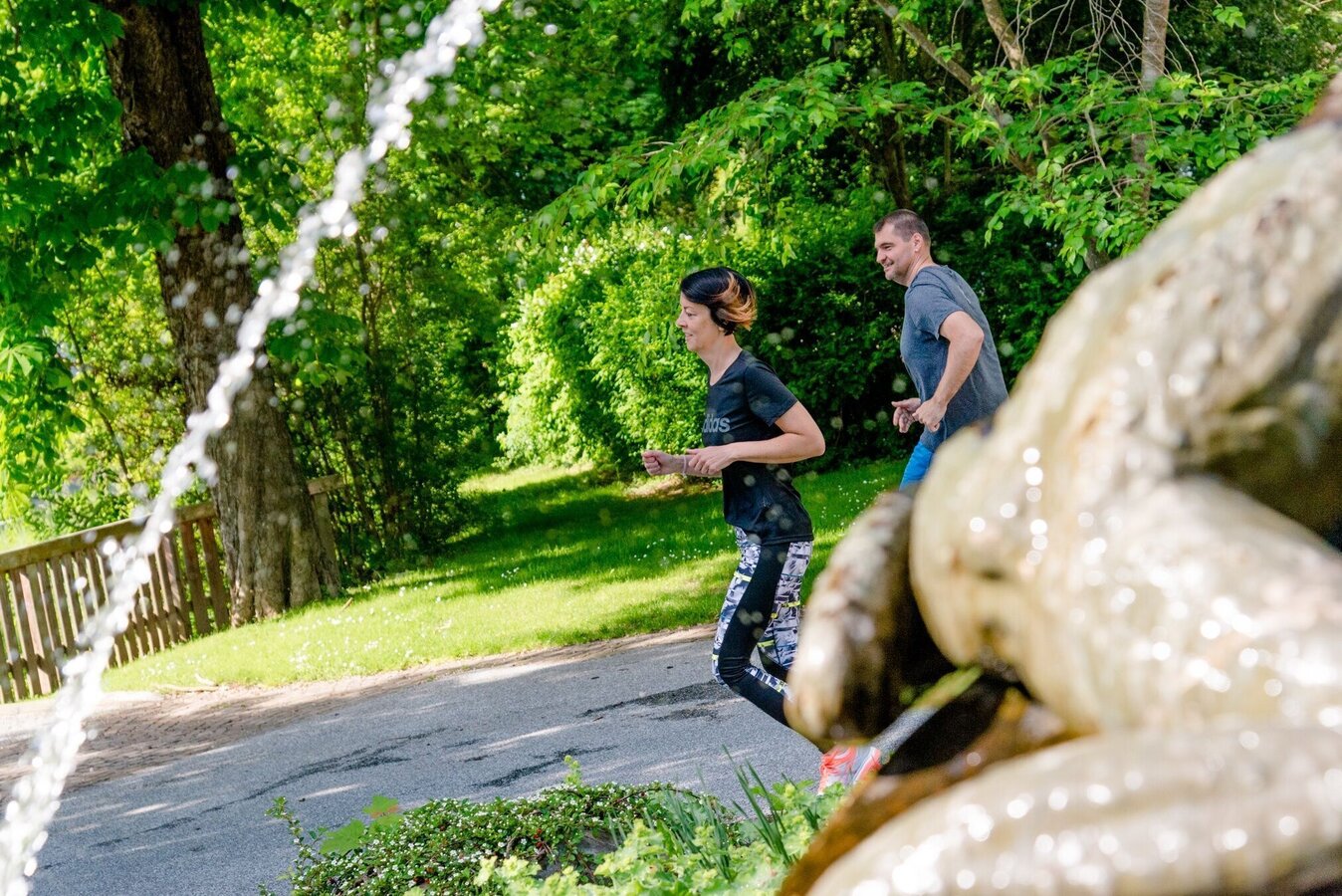 Perform the running ABC exercises for max. 30 sec., then continue running loosely.1.slightly uphill, after 100 m turn right2.straight on in the direction of the camping site3.to the railroad crossing4.cross, immediately right, along Siegesbrunn street5.at the end of the road left6.slightly uphill along road7.at 2.900 m downhill back to the thermal spa