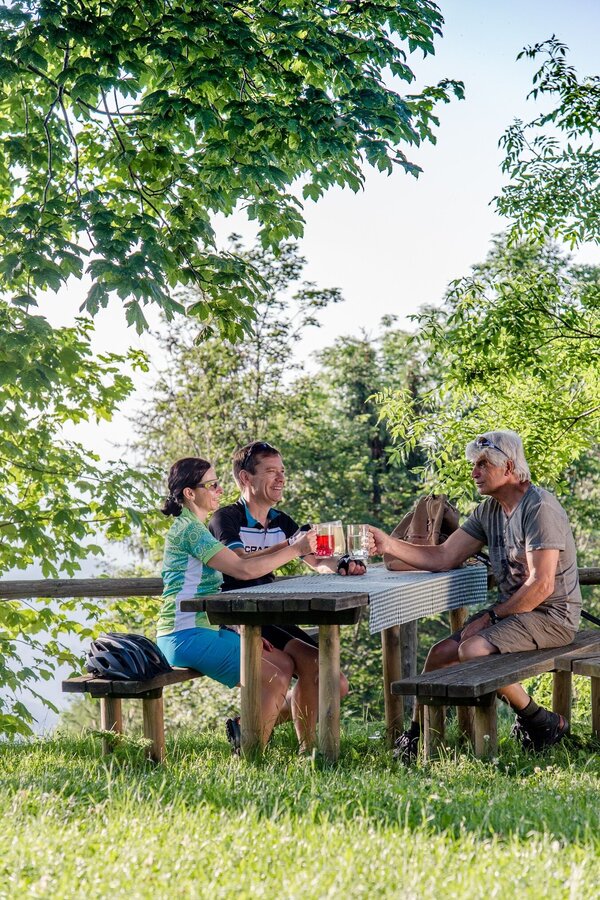 Follow this steeply uphill to the Pleschhöfer farmstead. Here you are rewarded with a wonderful view of the Gleinalm. We continue hiking on trail 562 past the St. Georgs chapel and below the Heigger cross to the idyllic Mühlbacher hut. The refuge offers hikers a shelter including a vending machine for drinks outside of opening hours - so a little change won't hurt.