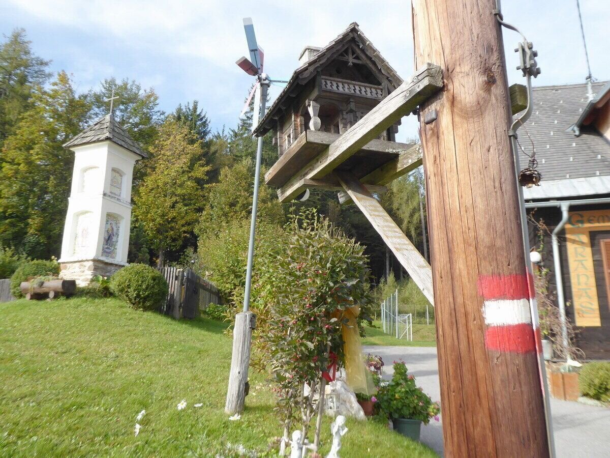 Ausgangspunkt ist der Ort Schwanberg. Bis in die zweieinhalb Gehstunden entfernte Ortschaft St. Anna orientiert sich der KKT-Zubringer an der markierten Route "St. Anna Weg 23". Dieser führt an der Pfarrkirche vorbei, folgt dann bis zur Abzweigung beim Gehöft Hubenjörgl der Straße und quert dann über den Sulmgraben nach Seewald und St. Anna (1038 m). Früher war die Kirche St. Anna das Ziel vieler Wallfahrer, daran erinnert auch heute noch die steinerne Außenkanzel. Wir aber pilgern weiter und folgen an der ehemaligen Volksschule vorbei dem Weg 591 zum Gasthaus Schmuckbauerwirt (1058 m). Nette Sitzgelegenheiten und eine originelle Naturkegelbahn laden zum Verweilen ein, aber der Weg ist noch lang, das nächste große Ziel, dass der Weg 591 erreicht, ist die bewirtschaftet Schirchleralm (1321 m). Vom Garanaser Hochmoor kurz davor erspäht man nicht sehr viel, auch der Aussichtsturm schafft keine Einblicke, aber immerhin kommen die exklusiven Garanaser Moorpackungen im Heilmoorbad Schwanberg zur Anwendung. Nun wird der Weg aussichtsreicher und luftiger, nächstes Ziel in einer Gehstunde ist die(1566 m). Vielleicht auch das letzte am heutigen Tag, nach rund sechs Gehstunden und 1300 Höhenmetern bestimmt keine schlechte Idee.