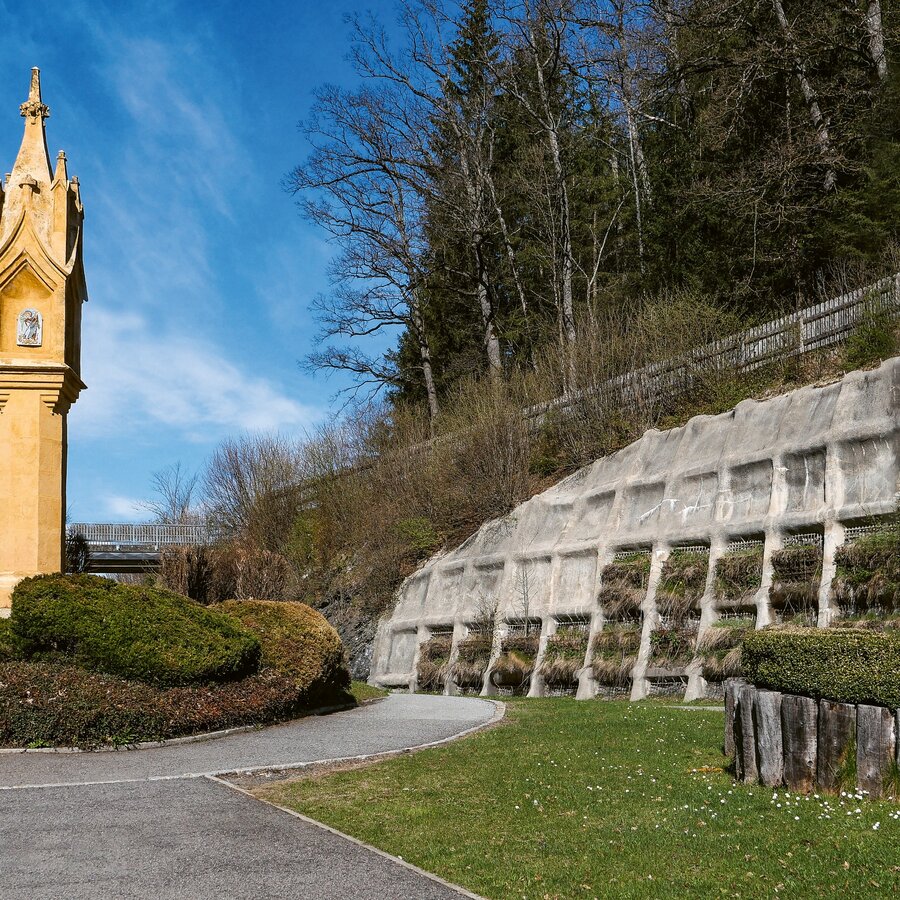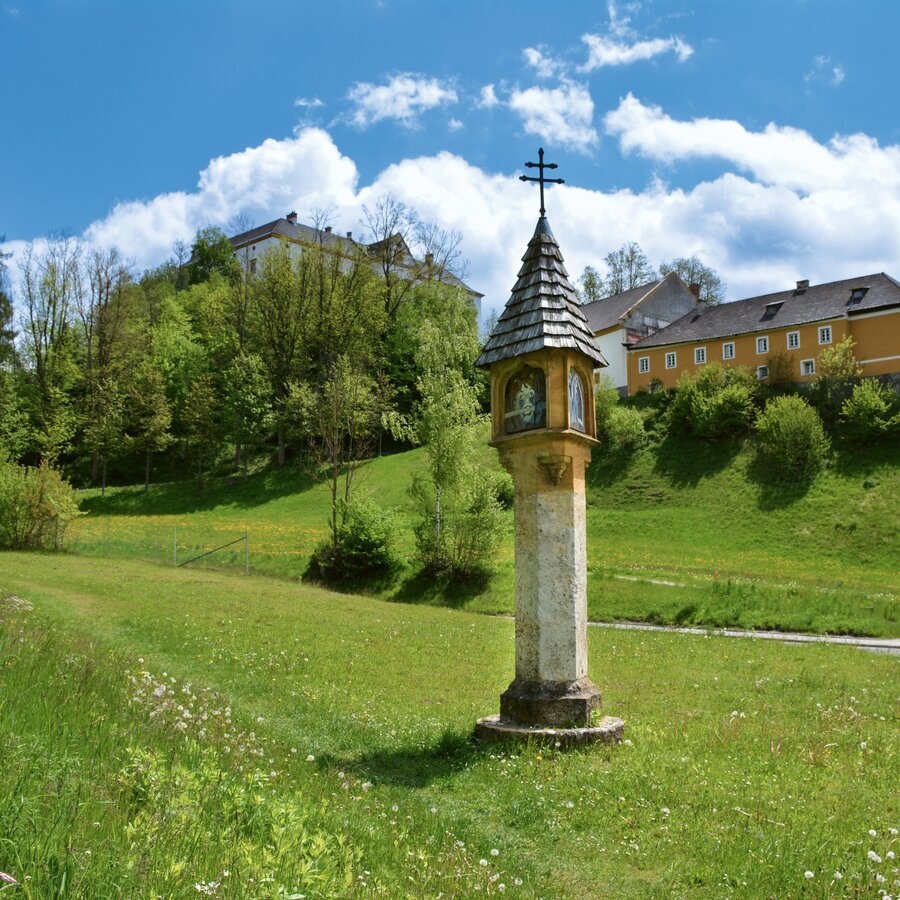 The hike begins at the Martersäule, which was created around 1450 and stands at the foot of the larch forest in the Märzenkellder district. From here, walk towards the driveway of Schwarzenberg Castle - here you will find the Column of the Poor from around 1400. Follow the driveway and descend the stairs from Schwarzenberg Castle to Murau's parish church.