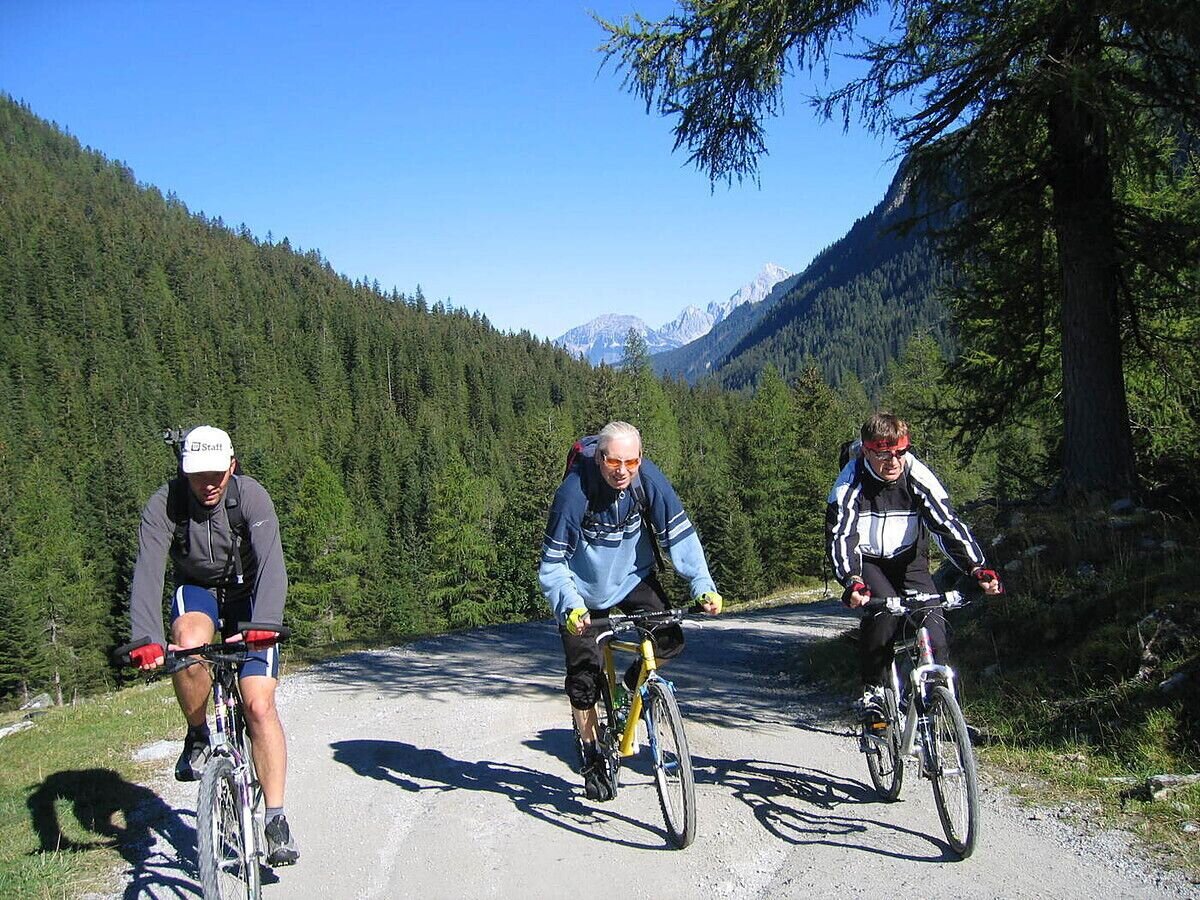 From there an "intensive" mountain bike tour begins up to the Oberhüttensee with the Oberhütte (1.860m), where you deserve a refreshment! On the way back, be careful when driving downhill!