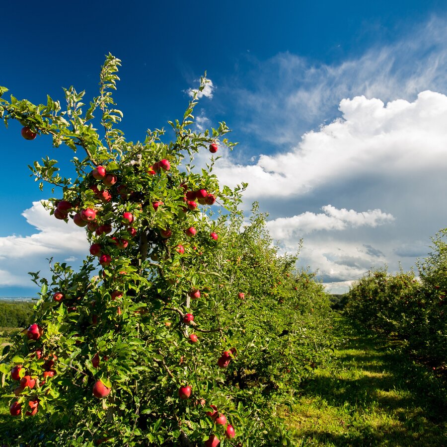 From St Ruprecht an der Raab, the route begins upstream along the Raabtal Cycle Path R11, but the ride is gentle and relaxed as we pass through Unterfladnitz towards Weiz. A few kilometres before Weiz, in Regerstätten, we branch off to the right and continue on the Apfeltour Cycle Path WZ16. More and more orchards now accompany us on our ride, which takes us over a short ascent and a following gentle descent into the village of Etzersdorf. Here, we first keep to the right to pass through the village, following the well-marked route that leads past the Buschenschank Leiner, away from the main road.
