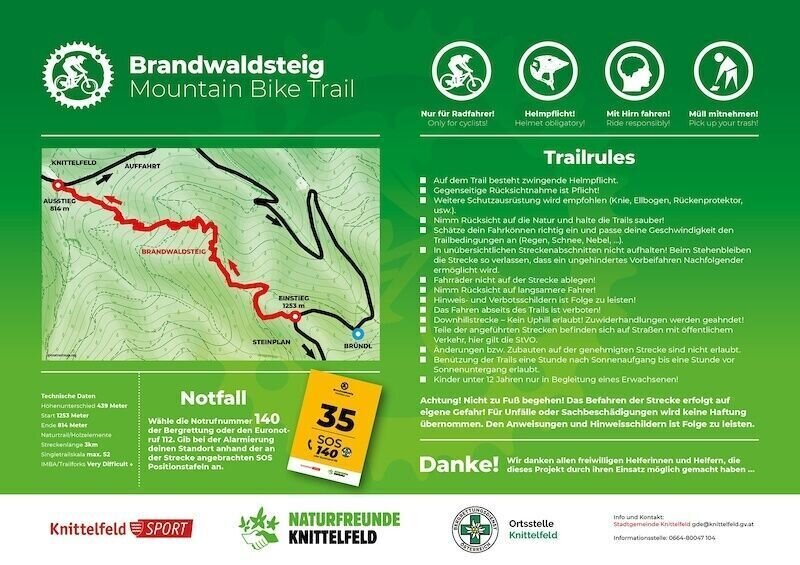 The Knittelfeld Friends of Nature local group looks after the single trail and will also regularly check it for sources of danger and maintain it. The insurance runs similar to hiking trails also about the Friends of Nature.