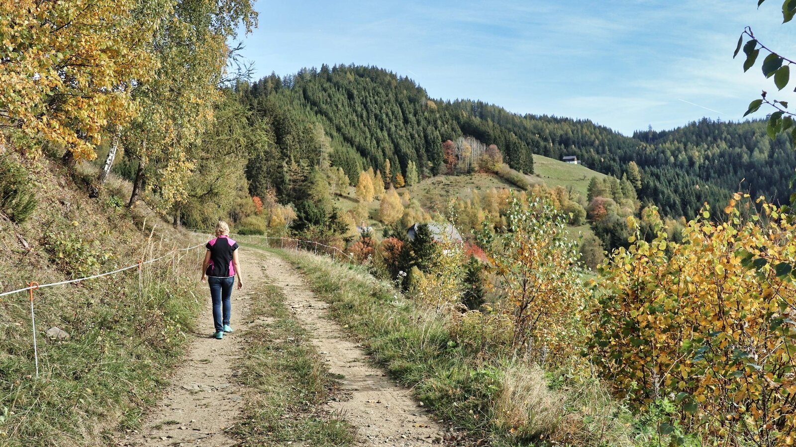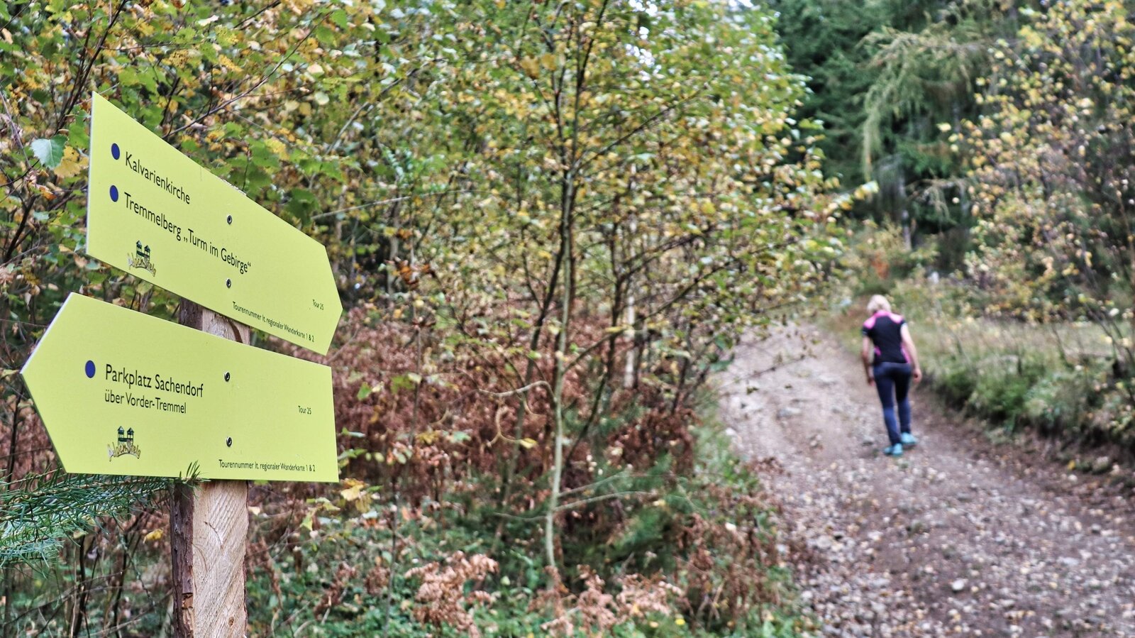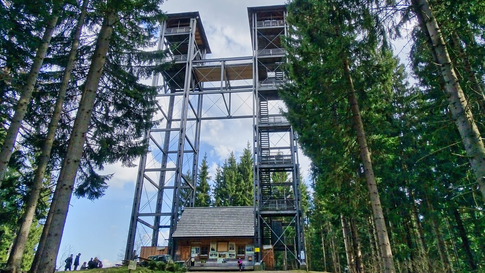 We start at the parking lot in Seckau (1), 843 m, which means we are right in the center of Seckau, where the monastery, the municipal office and the Hofwirt are located. The hiking trail leads directly past the JUFA Seckau in a south-westerly direction. After the Regner pastry shop, we come to a crossroads with a striking wayside shrine - the Färberkreuz. We keep straight on and follow the road for approx. 2 km. After the Hacknerhof (Offenbacher family), the asphalt road leads slightly downhill and then a road branches off to the left. We follow this access road, which leads comfortably uphill for approx. 1 km, first through the forest and then across meadows to the farm vlg. Willhuber farm (2), 1013 m. At the farm we walk directly between the house and the farm and follow the forest road, which continues here. Now the trail continues gently up and down along the forest road to the Hube vlg. Hinter-Tremmel (3), 1010 m. From Hinter-Tremmel, we hike approx. 1 km mainly through the forest until we reach the turn-off to the left towards Tremmelberg. Here too, the hiking trail follows a forest road. We follow this and pass a red barrier and then a wooden barn. Shortly afterwards, we reach a fenced-in crossroads, which we walk past on the right. This is where the steeper section of this hike begins. We follow the narrow gravel road, which leads uphill in a single line. Just before our destination, the road joins the wide forest road, which is also used as a private access road for the Tremmelberg. Here we turn left and follow the road, which leads slightly uphill to the Tremmelberg (4), 1194 m, and the "Turm im Gebirge" observation tower. The way back is the same as the ascent route. A steeper alternative descent is via the Calvary Church (see hike "Tremmelberg via Calvary Church").