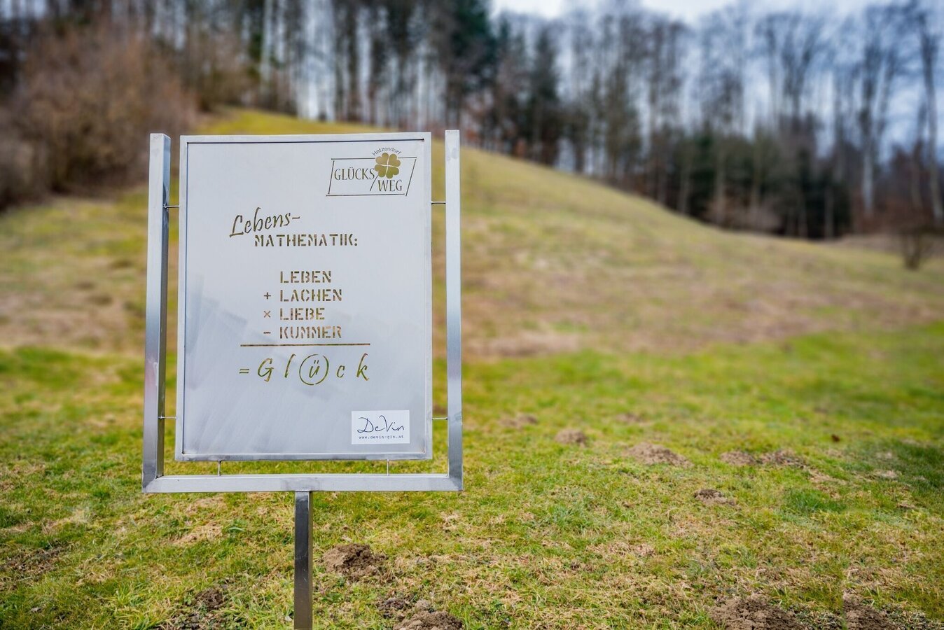 The "Glücksweg" (the trail of happiness) in the "Glücksdorf" (happy village) Hatzendorf - circular trail in search of happiness. Follow the traces of happiness and find out what famous personalities have to say about happiness.