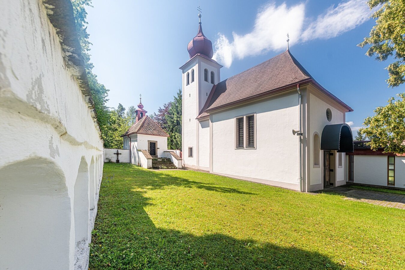 Die Kirche wurde 1660 von Gräfin Elenore Eusebia von Wagensperg gestiftet und besitzt einen schönen barocken Hochaltar aus der Zeit 1760/70. Sehenswert ist außerdem das Portal, das nach Restaurierungsarbeiten 1969 wieder in altem Glanz erstrahlt.