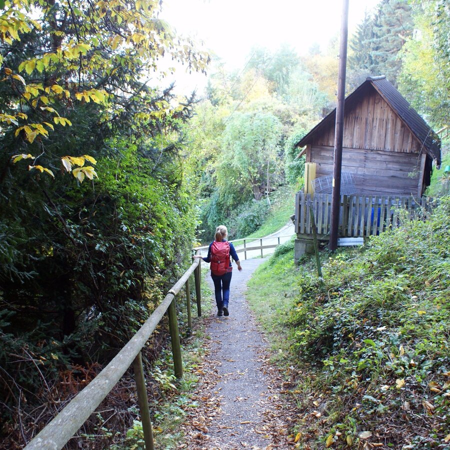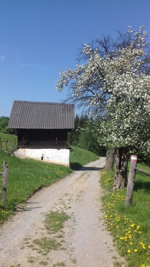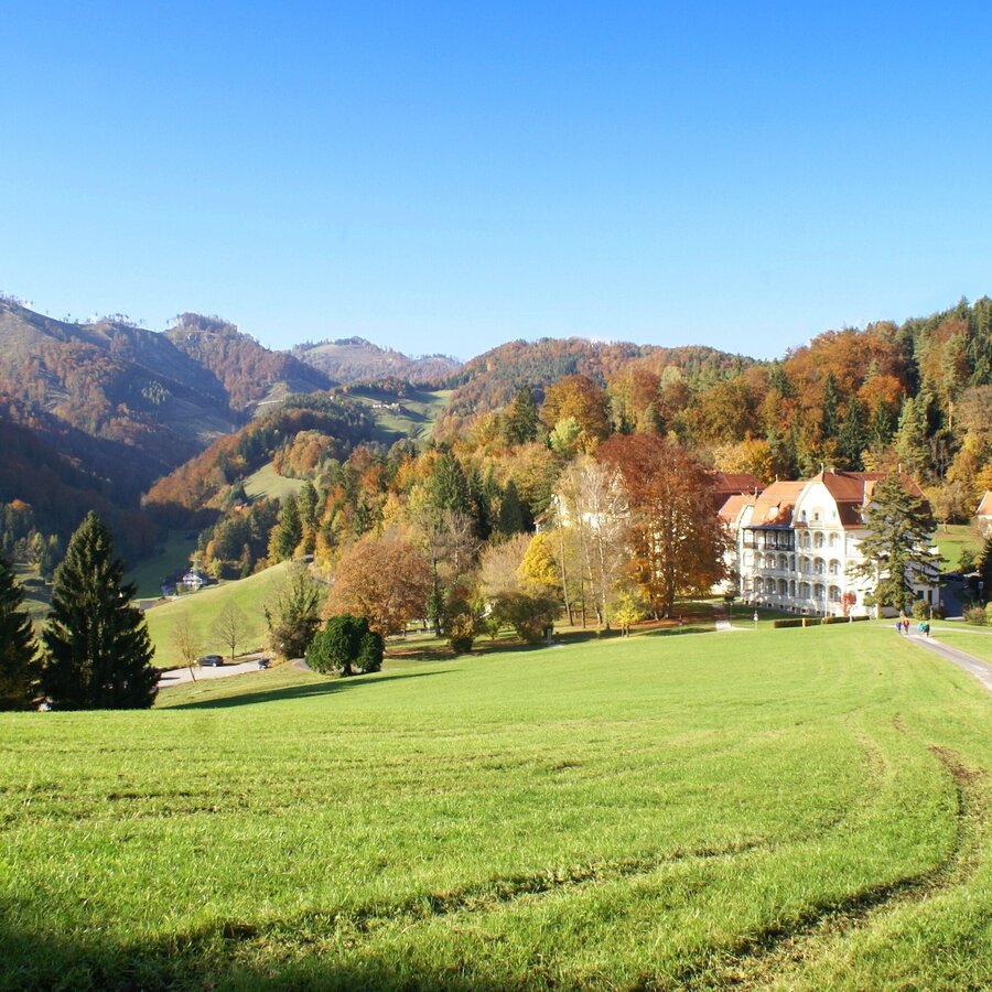 Der Wanderweg startet beim malerisch gelegenen LKH Enzenbach und führt gemütlich hinauf zum Gsollerkogel.