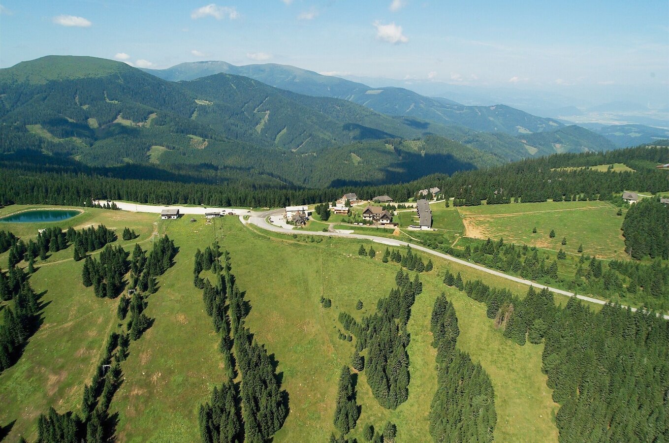 Wir überqueren diese an Wochentagen stark frequentierte Straße und gehen Richtung Wiedneralm weiter. Rund 1 km folgen wir nun der asphaltierten Straße, die leicht bergauf führt und uns bis zum ehemaligen Alpengasthof Wiedneralm bringt. Begleitet werden wir dabei von vielen idyllischen Wochenendhäusern.