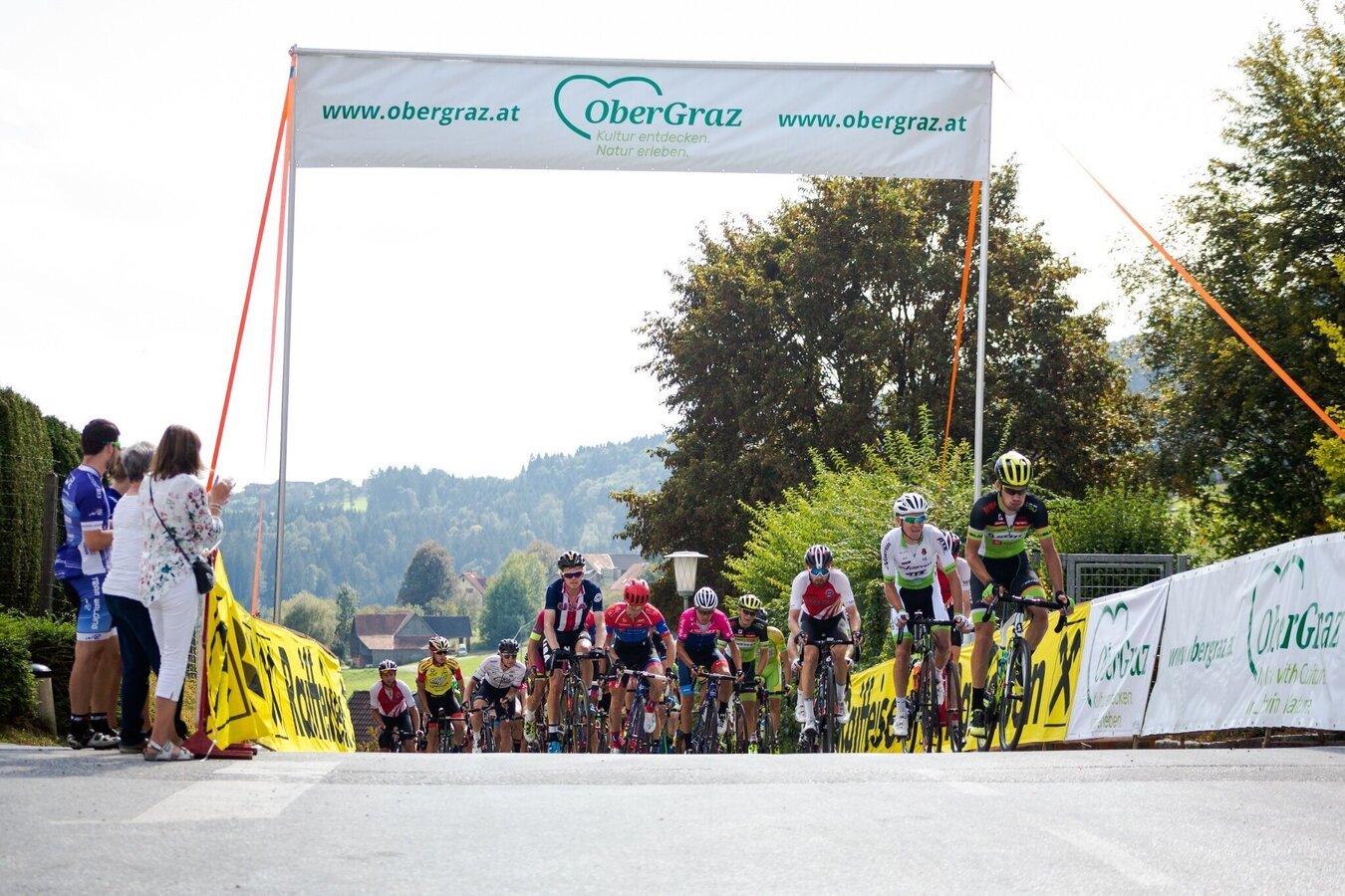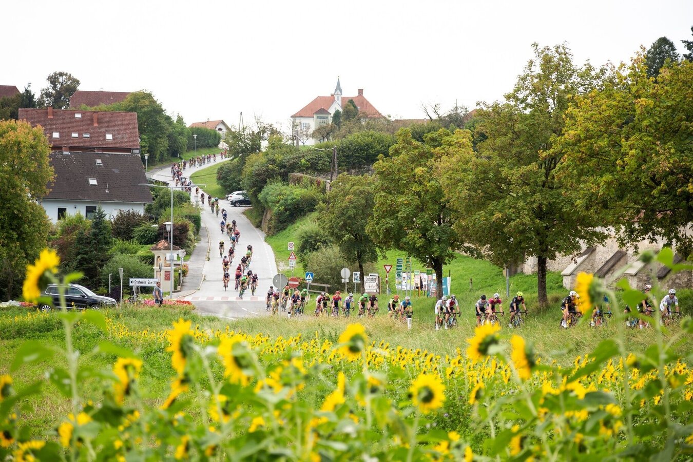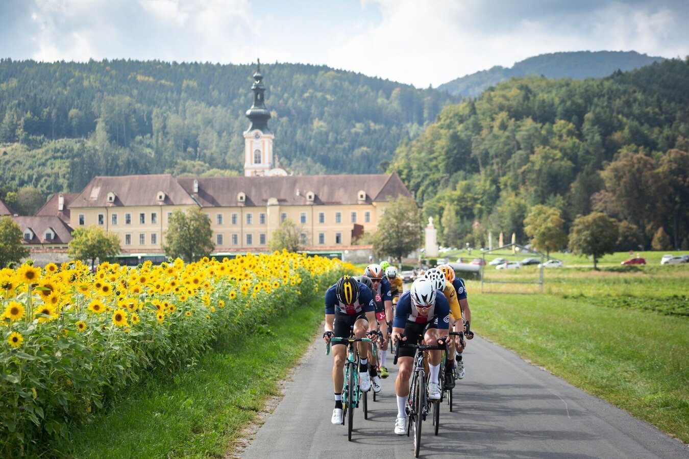 Gratwein-Strassengel has been holding an international circuit race for professional road cyclists for more than 20 years. The classic of the UCI Europe Tour in the 1.2 category of multi-day events demands a lot from the riders: 9 laps over 185 km, 3,000 metres in altitude and 2 mountains classifications – anything but a gentle bike ride! Even those who want to complete just one round will need to exert themselves. The good news is that ordinary mortals don`t have to race against the clock, nor against any opponents. Instead, take your time and enjoy the beautiful views of the Koralm and the Gleinalpe, and see historic sites such as the pilgrimage church Maria Strassengel, Plankenwarth Castle and Rein Abbey. Starting on the main square in Strassengel, ascend along Plankenwartherstrasse at a 14 % slope up to the first mountains classification, the dreaded Luttengraben (top athletes climb it in just under seven minutes). Passing Plankenwarth Castle, the L332 continues to St. Oswald. The climbs and descents along several ridges reward you with panoramic views of the Koralm and Gleinalm mountain ranges. From the centre of St. Oswald (Nah & Frisch shop) the route leads you to the right down in the direction of Gratwein. During the descent to Schirning you can rest your legs! Follow Oswalder Strasse (the L336) until you reach the Reiner Teiche (ponds). Here you turn left into Teichhütterweg and ride along the paved road along the banks of the Annateiche (fish ponds). When you reach Greithstraße turn right. Now it's time to take a deep breath for the second mountain classification, the Klosterriegel. The arduous climb is rewarded with a beautiful summit view of the oldest Cistercian monastery in the world, Rein Abbey. After the hilltop you can take it easy for a bit, and, after the zebra crossing, take the second turn right into Reiner Strasse (Landesgutweg) in the direction of Gratwein. If you are now in need of refreshments, you will find plenty of opportunities to stop in Gratwein. At the roundabout on the far end of Gratwein, turn right and follow Judendorfer Strasse in the direction of Strassengel. At the petrol station in Strassengel, turn right and pedal for all you´re worth in the final spurt. On the main square in Strassengel the tour ends, or at least the first round of it does. The pros go round another eight times and take about four and a half hours for all nine laps!