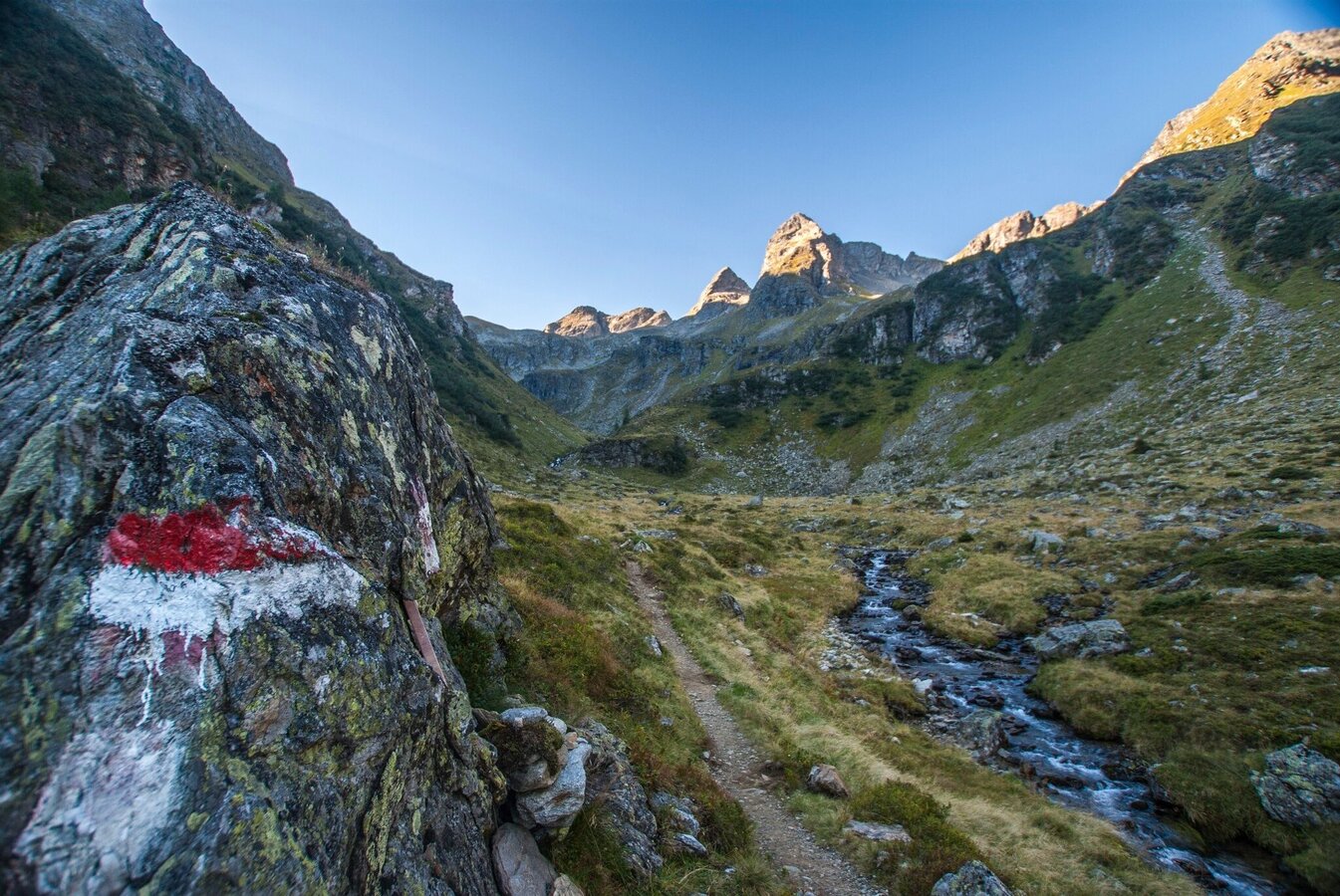You begin this all-day hike along the theme trail "Wild Waters" in Schladming at the Kraiter car park, with your constant companion the fast, untamed torrents of the Talbach creek. Through Talbachklamm gorge you reach the village of Untertal, where things become a little gentler as you pass the fire station and take a path across gentle meadows and pass by several farms until you reach Untertalstraße road at Janerbrücke bridge. About 200 m along the road you then take off right from the street and shortly after reach the Toteisboden nature conservancy, with its natural irrigation and ventilation system dating back to the Ice Age, providing perfect conditions for this unique world of plants. Crossing lush alpine pastures, you will arrive, at Tetter moor, an area of breathing beauty and tranquility, where the Untertalbach creek meanders slowly and quietly through the moor. The next section leads you across gentle meadows and through forest alongside the crystal-clear Untertalbach – with friendly inns and alpine huts (Waldhäuslalm inn, Sondlalm inn, Gasthaus Weiße Wand inn) inviting you to take the occasional refreshment break. At Almgasthaus Riesachfall most of the tour is already done, appr. 1.5 to 2 hours further via the Steinriesental valley you reach Gollinghütte chalet. You will stay overnight here (please book a sleeping place in advance, phone: +43 676 53 36 288). From Gollinghütte you can make a nice stroll to "Gollingwinkel" in the evening. This amphitheatre-like place at the foot of Hochgolling's North face is truly special.