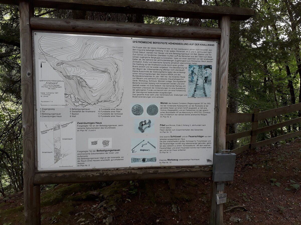 The hilltop settlement on the Knallwand is a fortified and difficult to access retreat settlement created by the Romans above the Knallwand and served as protection against enemy attacks.